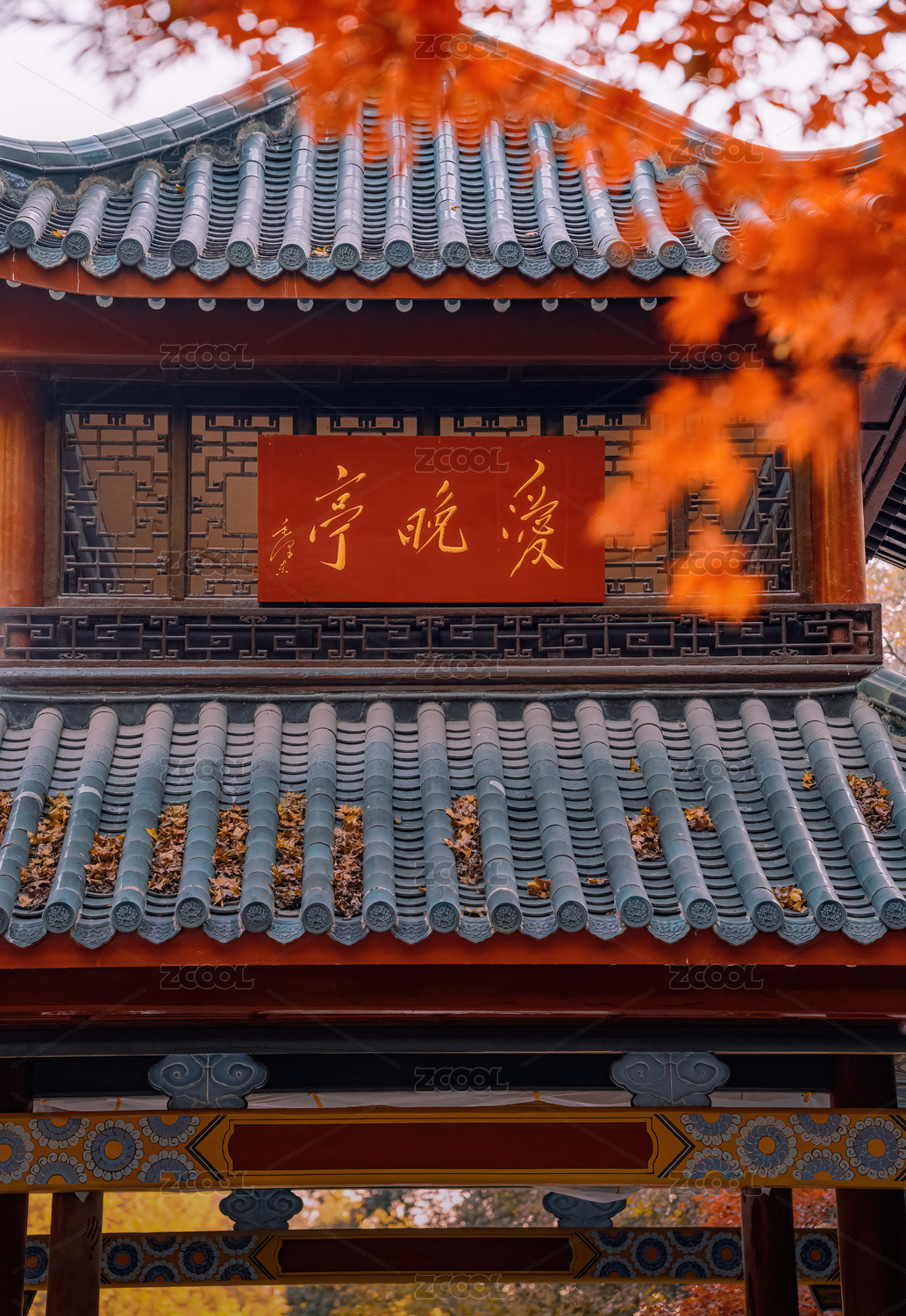 湖南长沙岳麓山爱晚亭冬日红叶风景