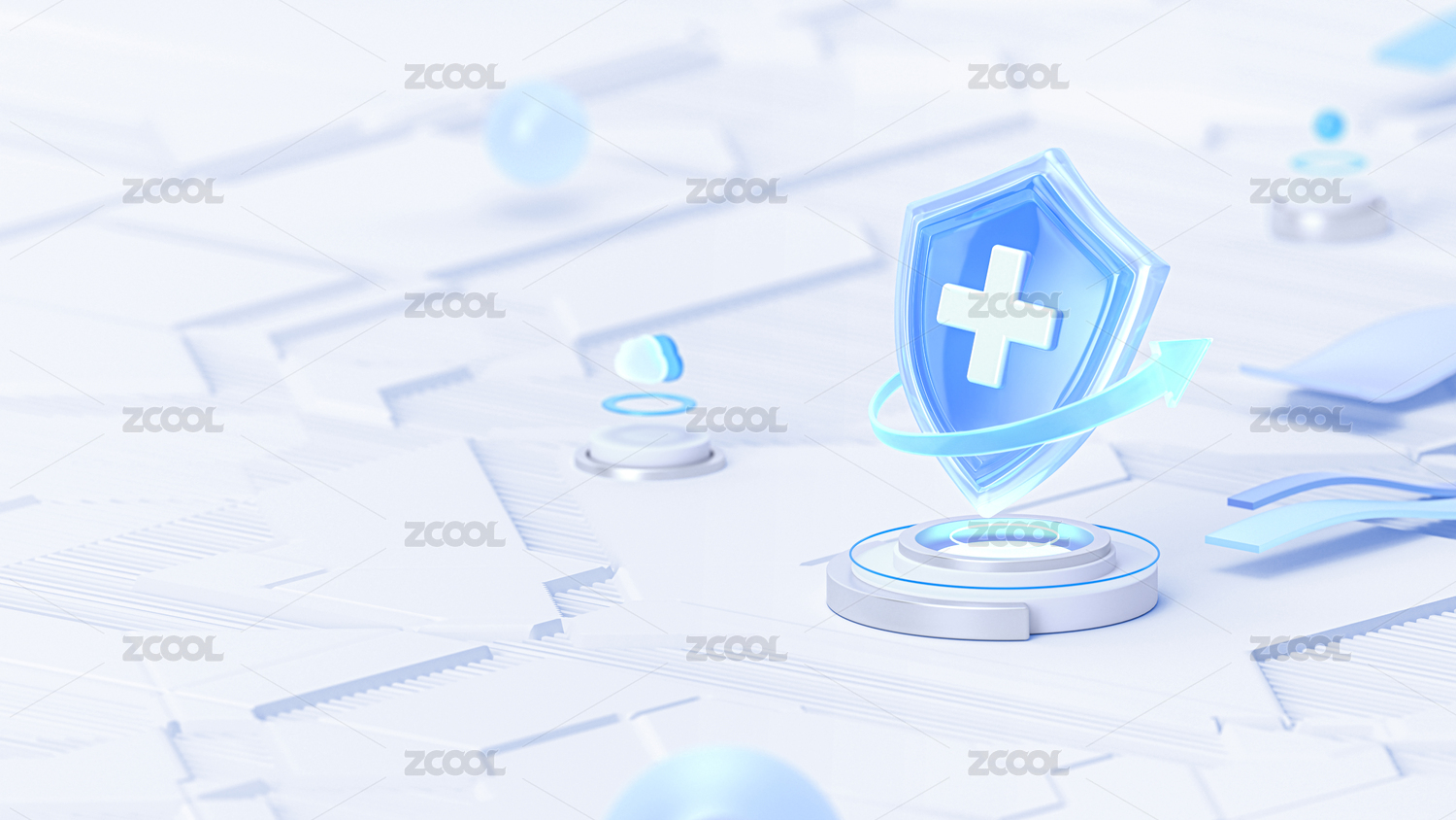 科技蓝白盾牌保护B端智能场景背景3D渲染