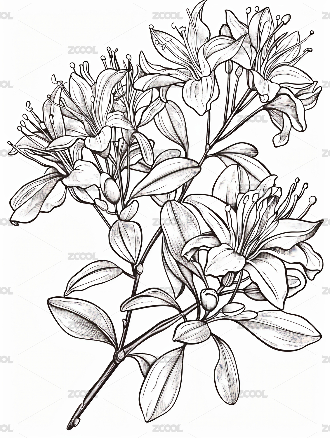 黑白线稿版画风格桂花图案