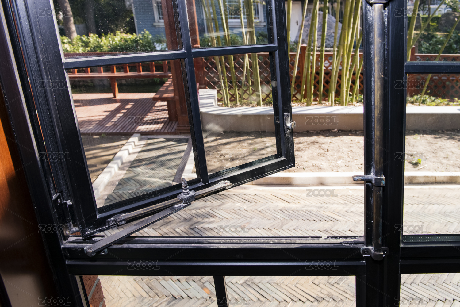 打开的木头门窗