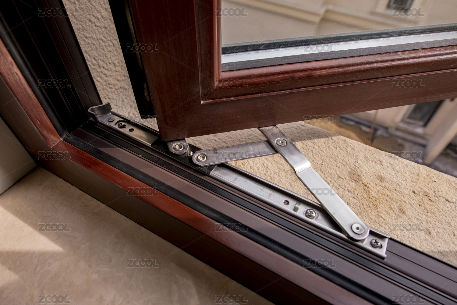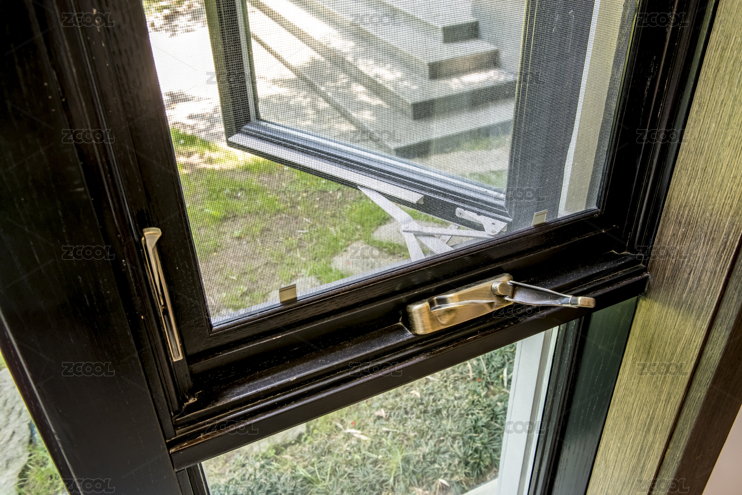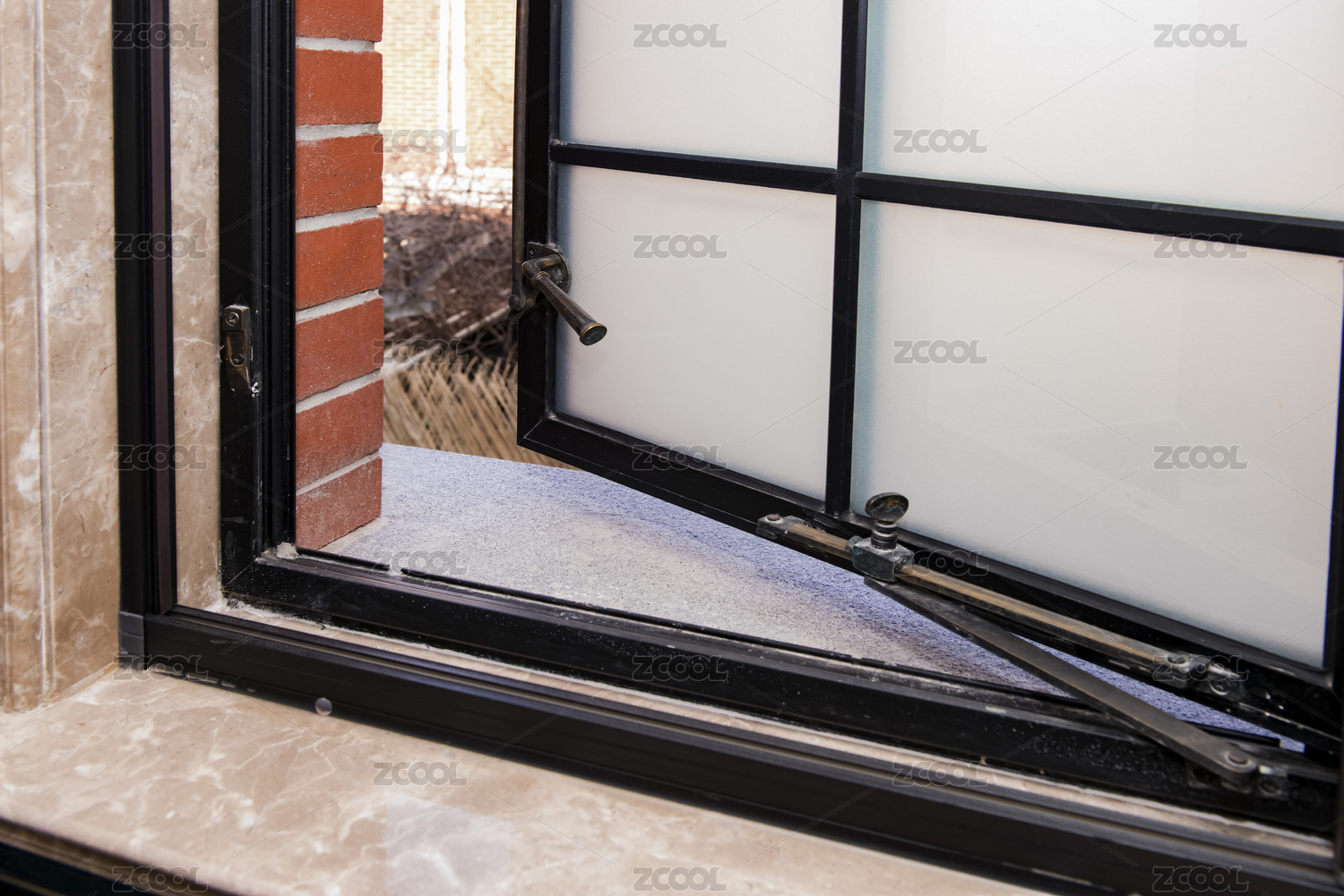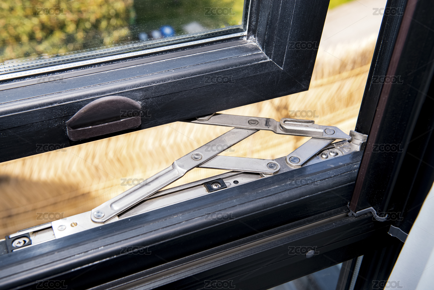 连接窗户的铁杆细节