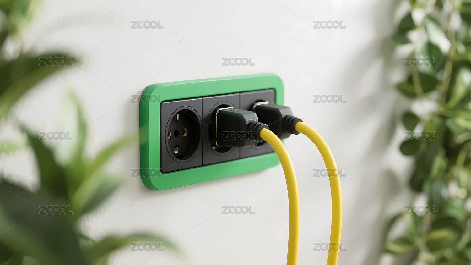 电源插座与植物装饰