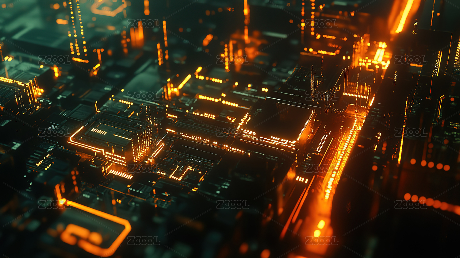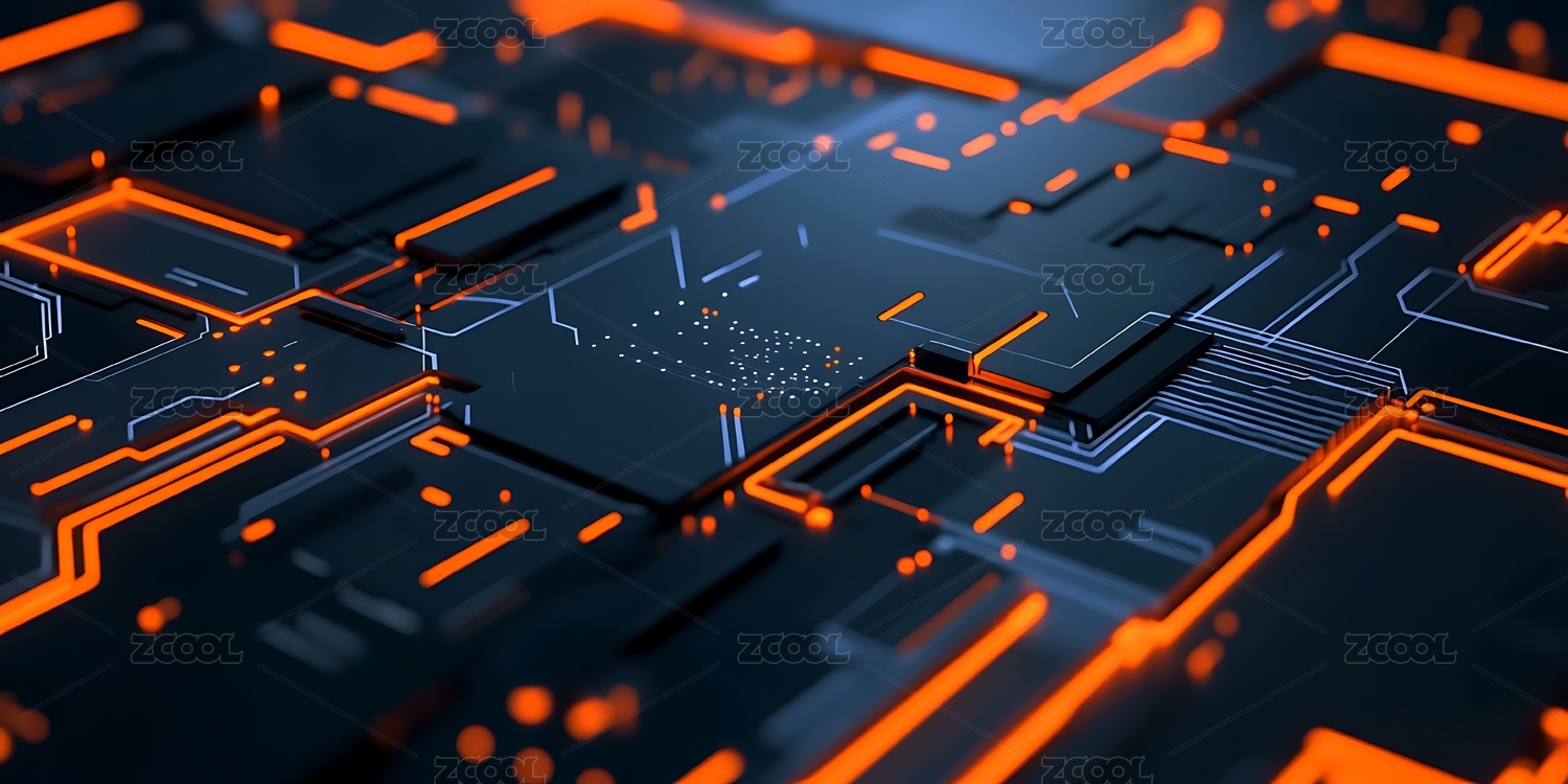 芯片金融科技赛博朋克人工智能三维渲染电路