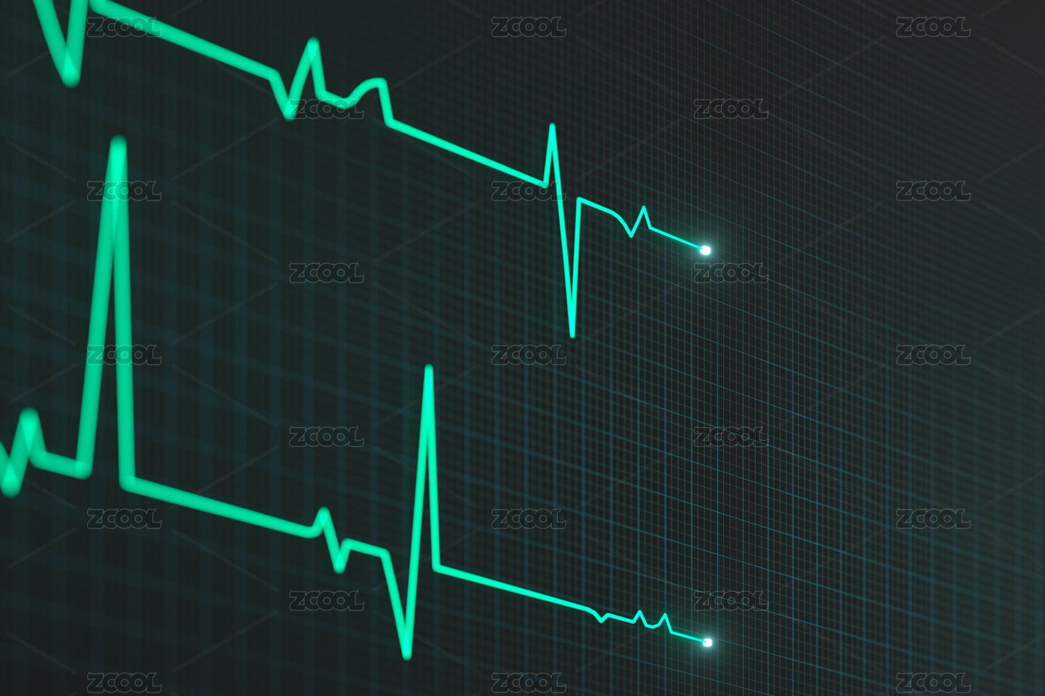绿色屏幕上的两条心脏图曲线 三维渲染