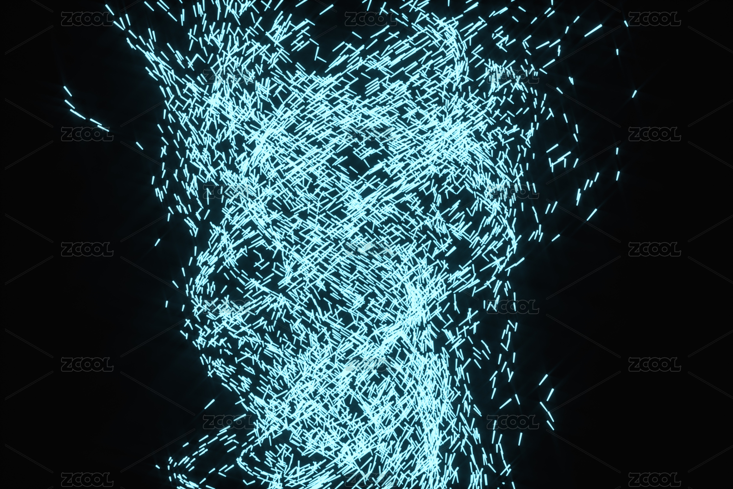 白色粒子延伸汇聚远方消失在蓝色背景上