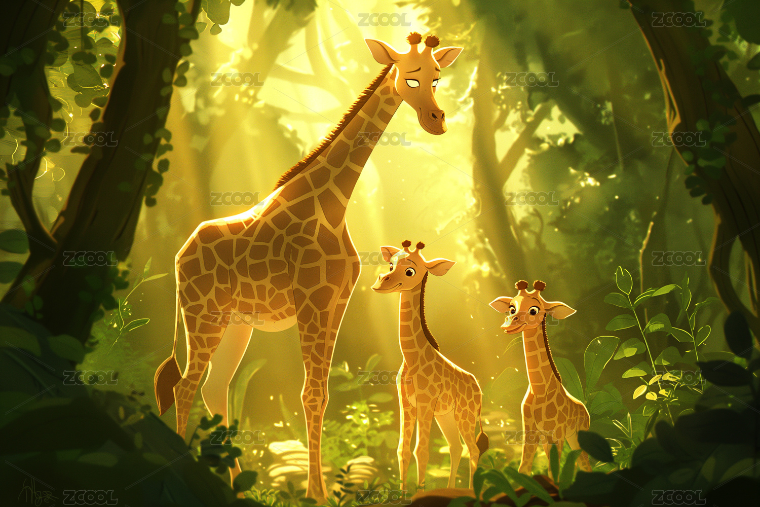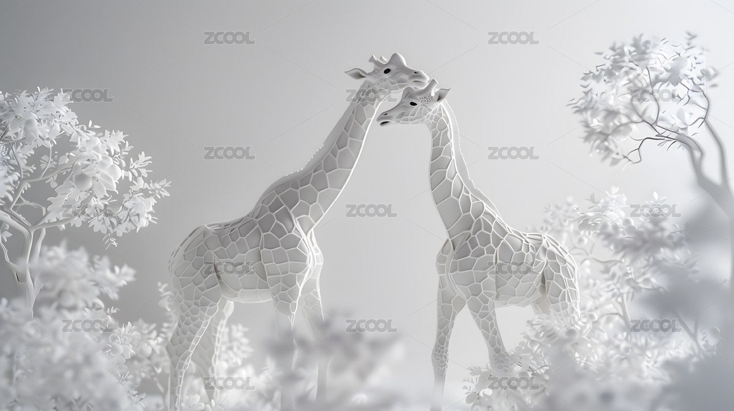 长颈鹿可爱唯美野生动物3D卡通插画壁纸