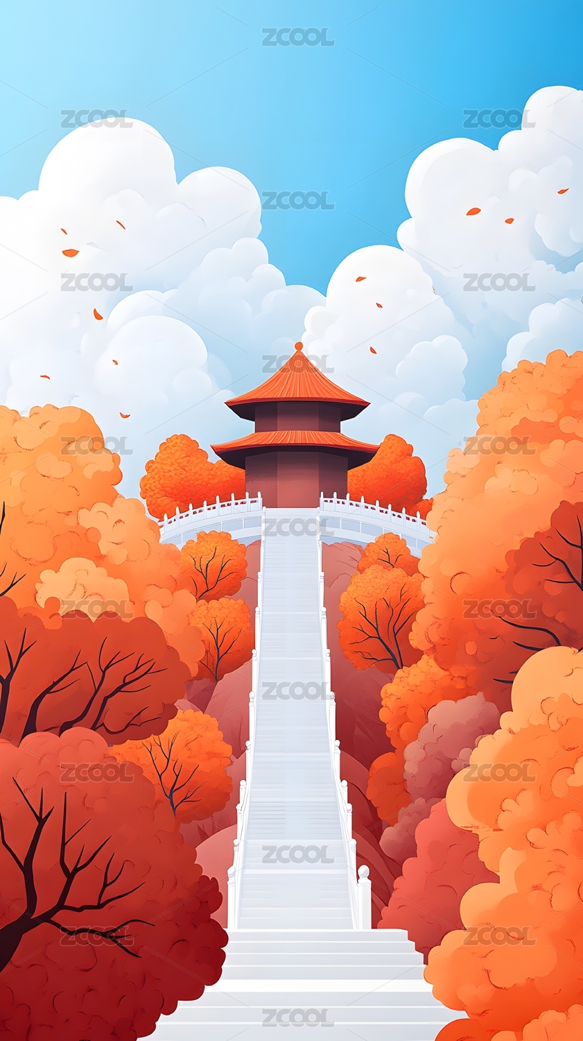 唯美自然风景古建筑插画