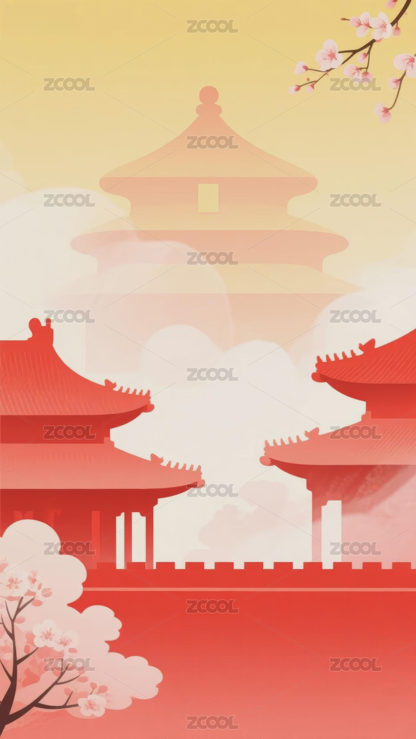 中国风古建筑的国潮插画背景