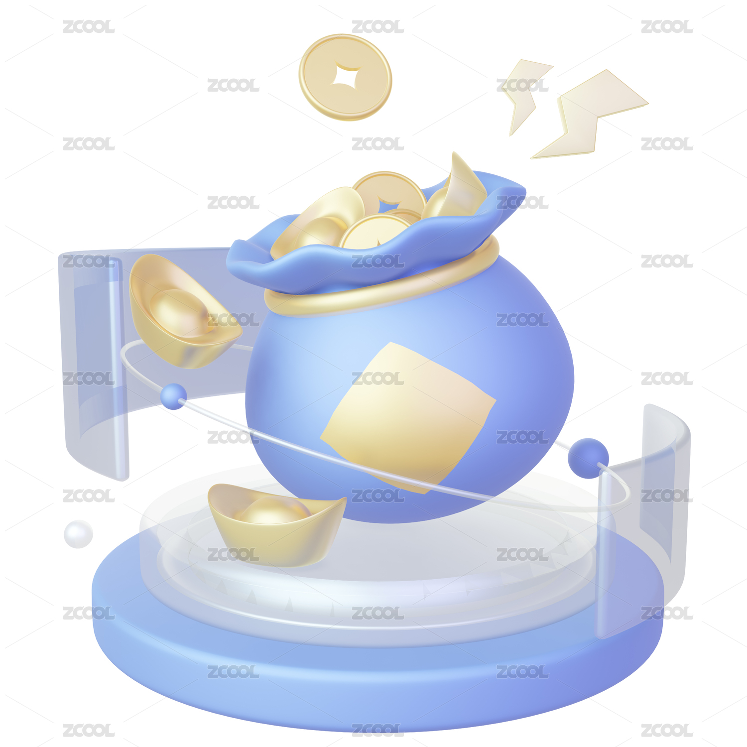红金色喜庆理财促销礼盒秒杀3d立体插画