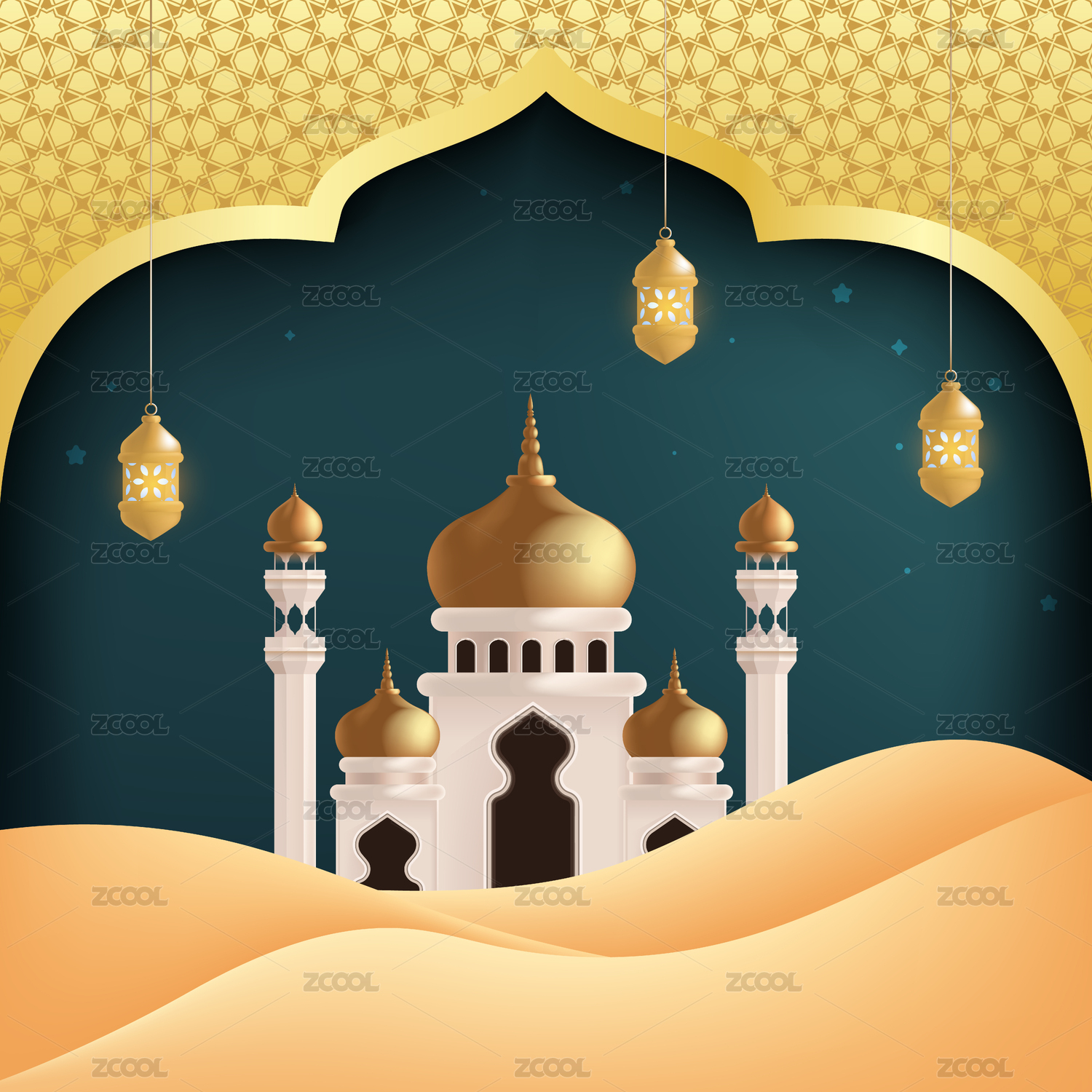 展台,素材,主题,立体,场景,喜庆背景,剪纸风格,伊斯兰,穆斯林,开斋节