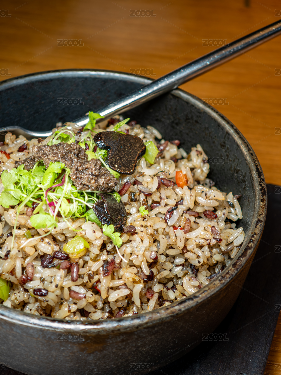 棕色木纹桌上放着一份孜然烧烤肥牛