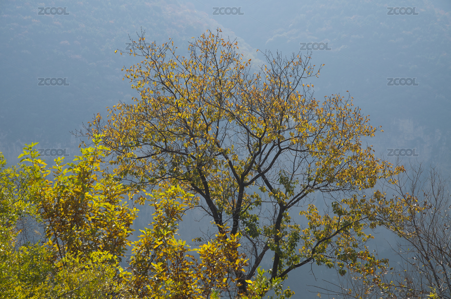 太行山深秋逆光中的树