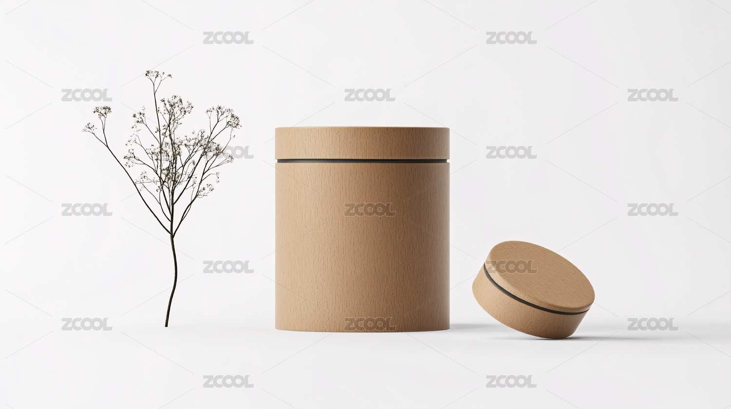 圆筒纸盒与干花静物图