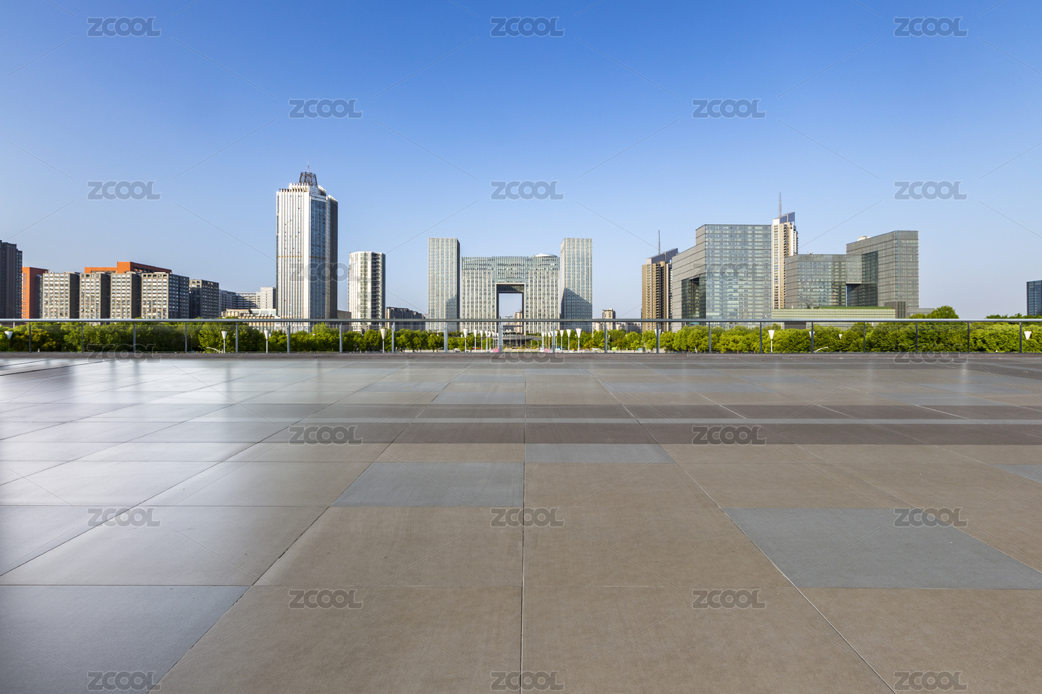 现代城市天际线与空旷路面