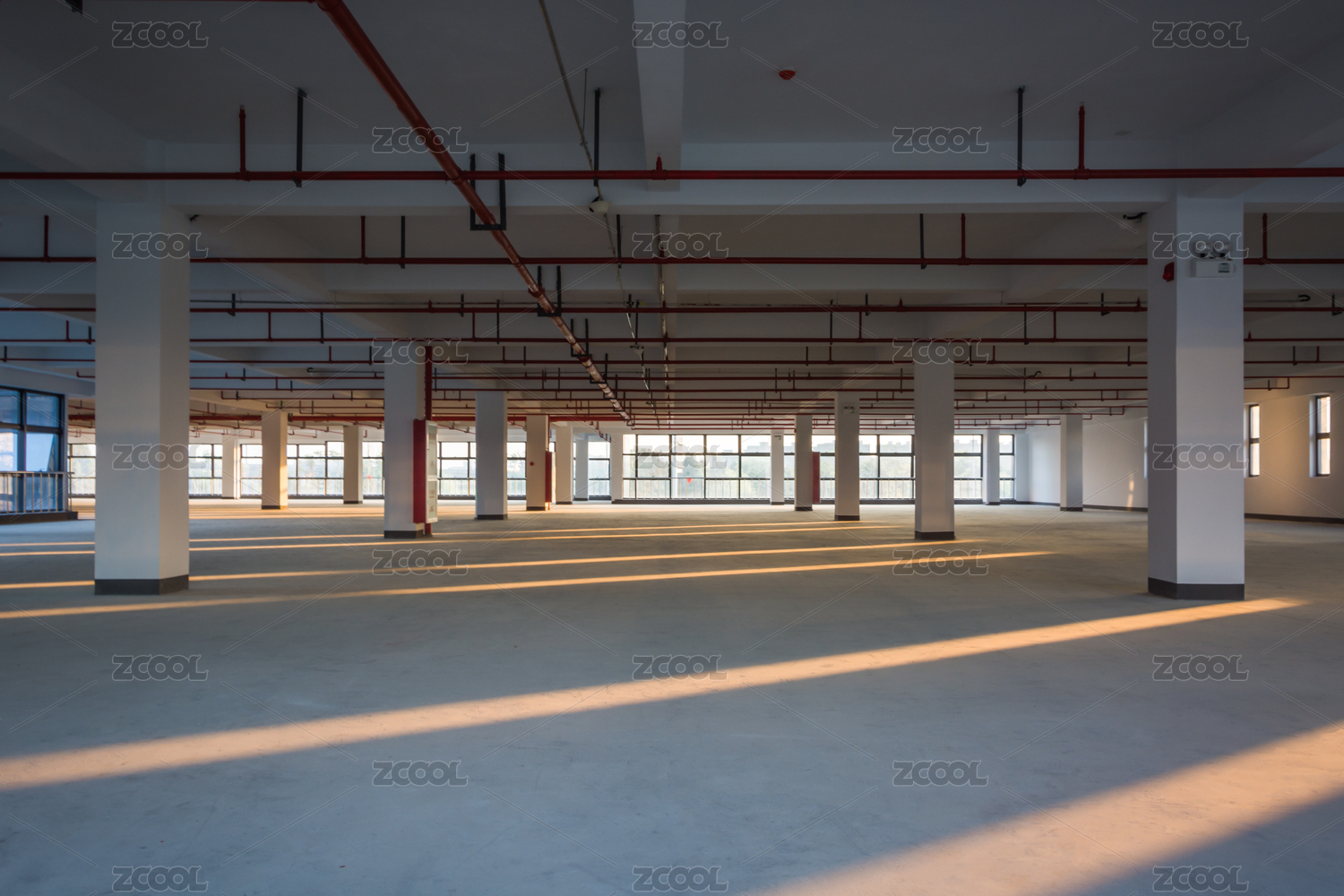 空,楼层,建筑,大楼,商务,办公,空的,水泥,落地窗,窗户