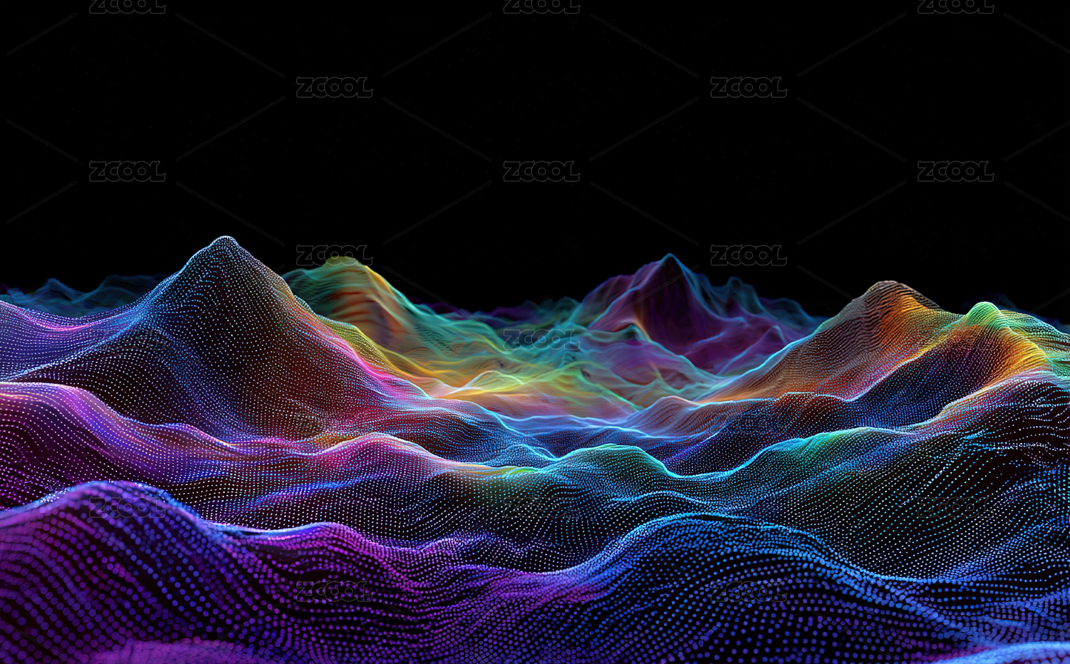 炫丽多彩艺术感的山脉3D全息场景背景素材