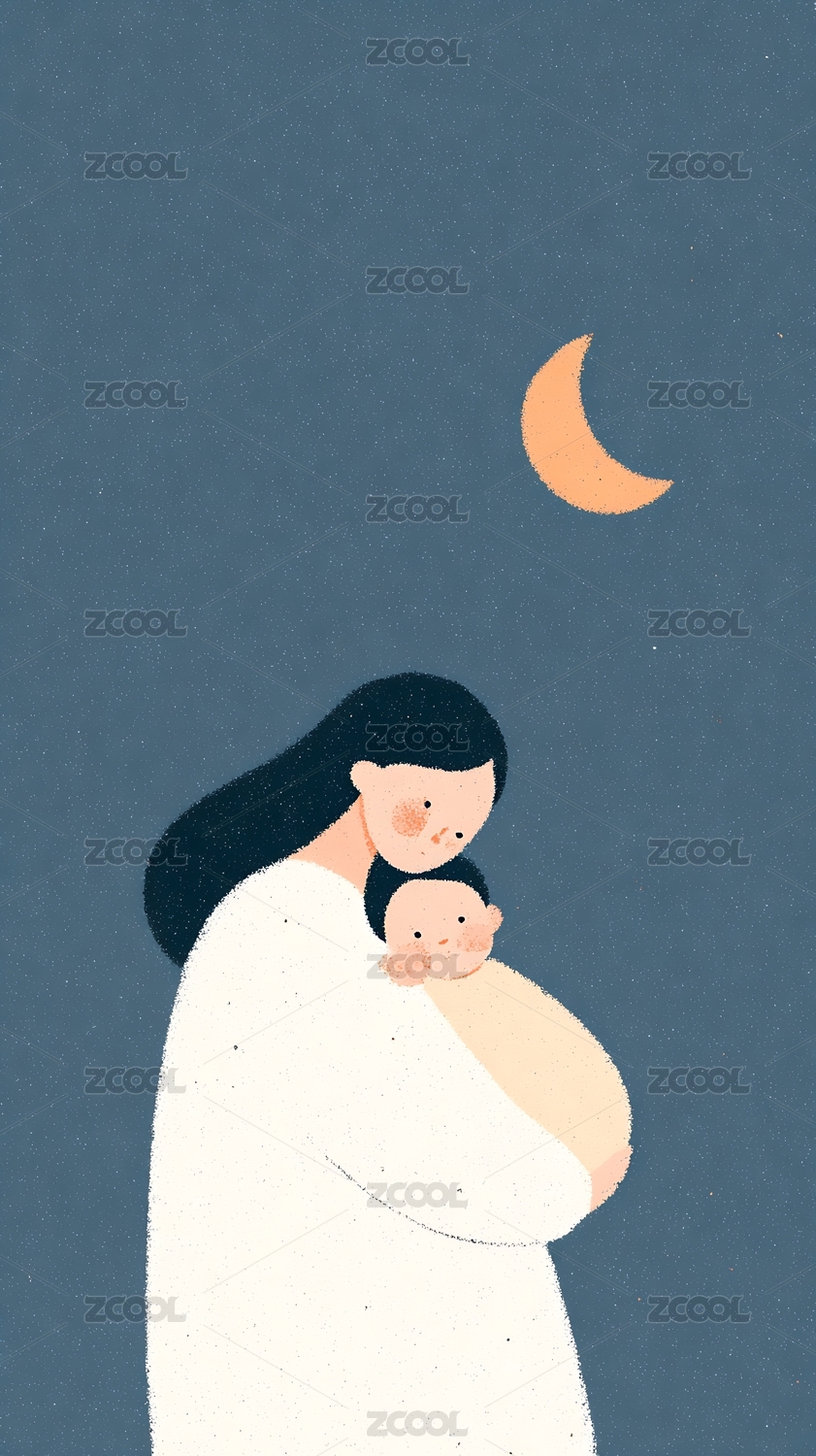 手绘,卡通,母亲节,插画,母子,家庭,温馨,母爱,妈妈