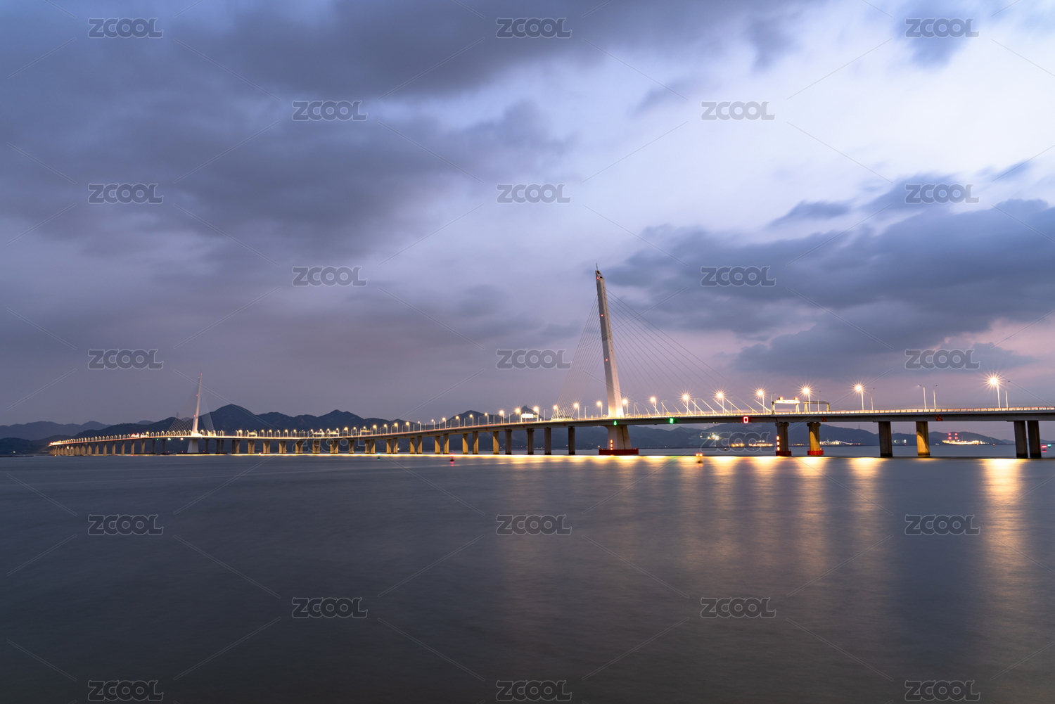 亚洲中国广东省深圳市深圳连接香港的深圳湾大桥日落风光