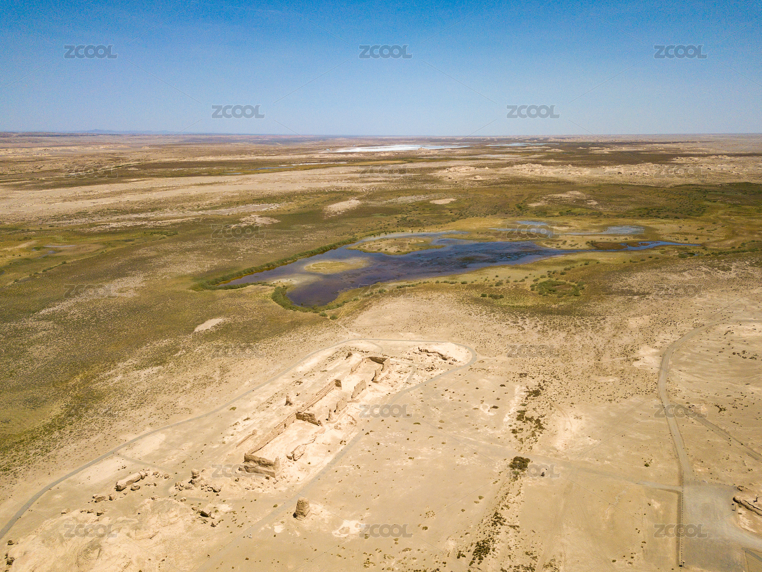航拍视角下的甘肃省玉门关大方盘城河仓城