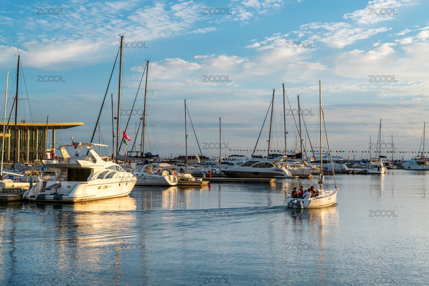 中国汕尾小岛渔村,停泊在港口的渔船。