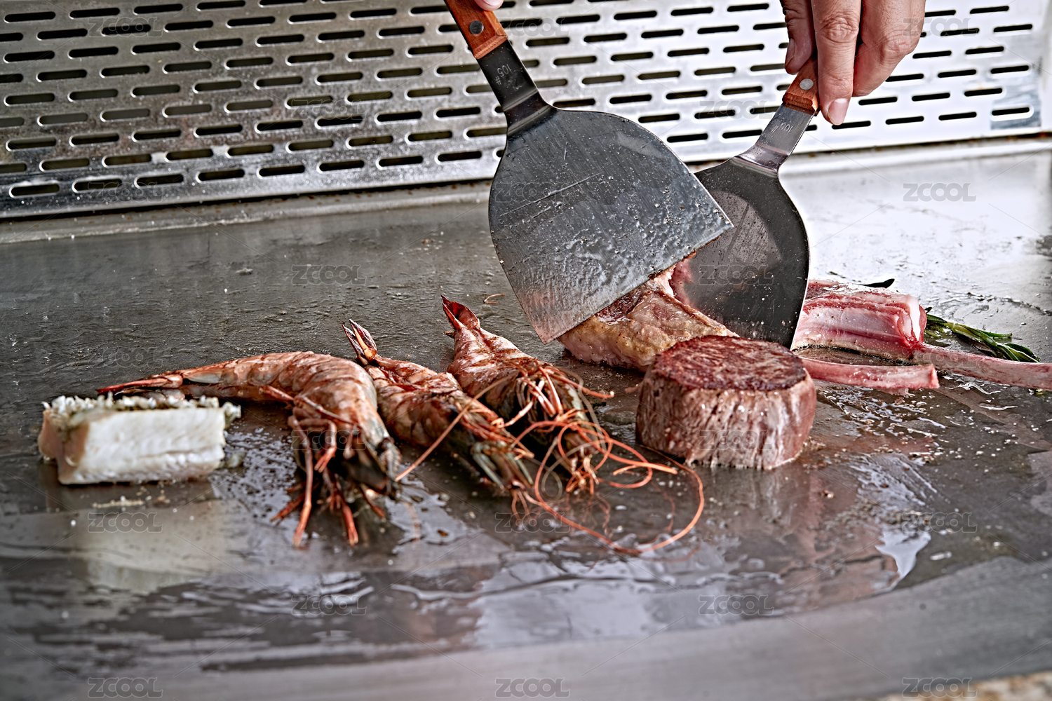 烹饪,肉排,铁板烧,战斧羊排,美味,烹调,饮食,日式铁板料理,人与食物,厨师