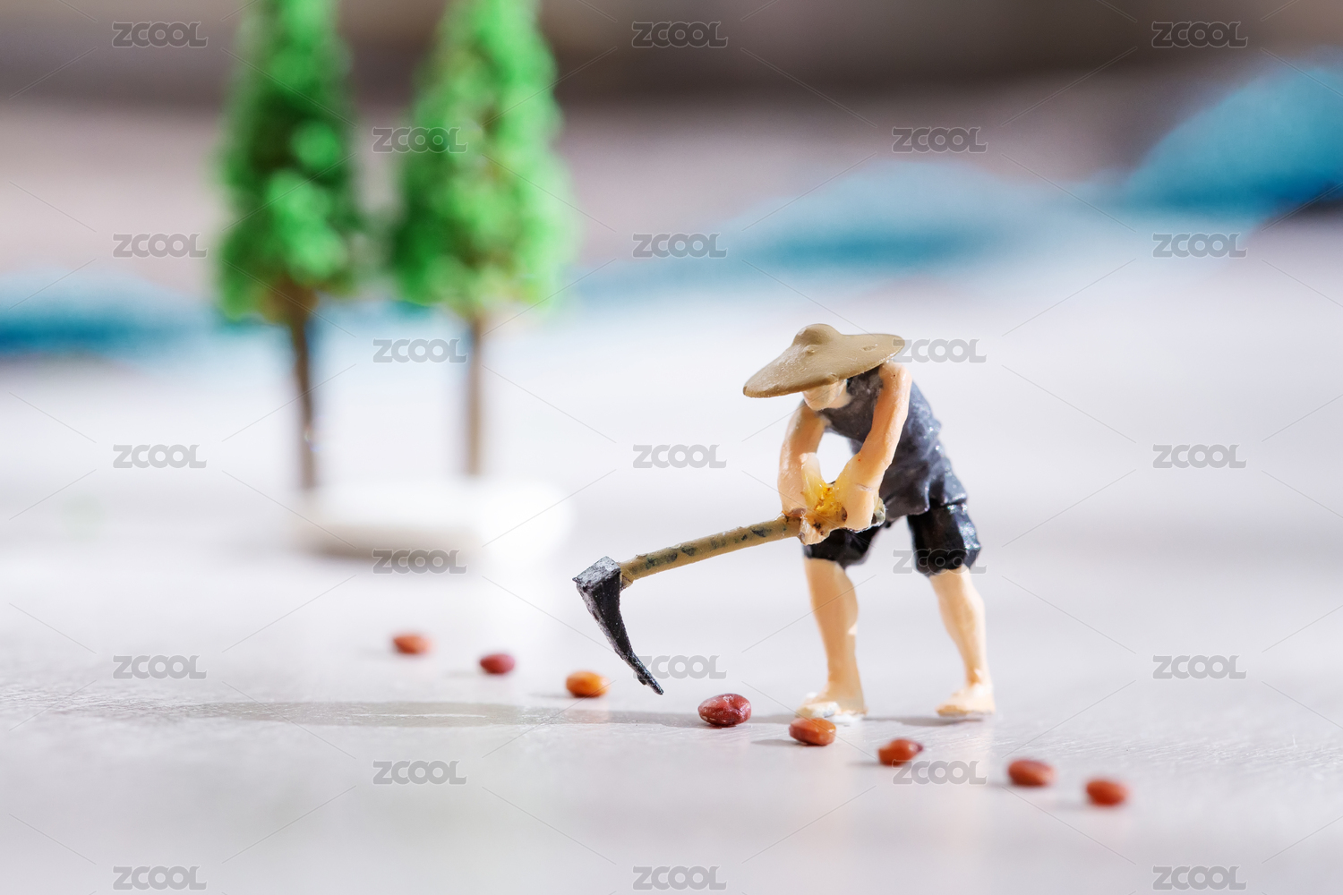 绿色生态微缩摄影微距工人正在植树 绿色生