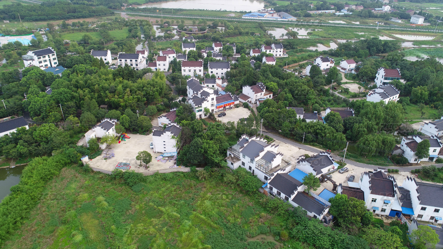 航拍中国安徽宣城郎溪梅渚镇高塘村夏日风光