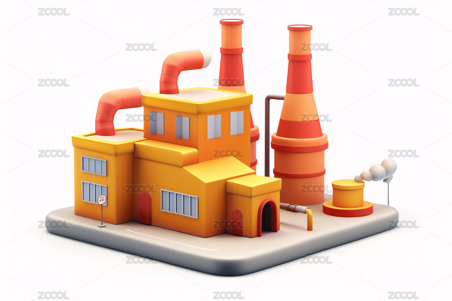 工厂与烟囱3D渲染,工厂工业用于环保环境