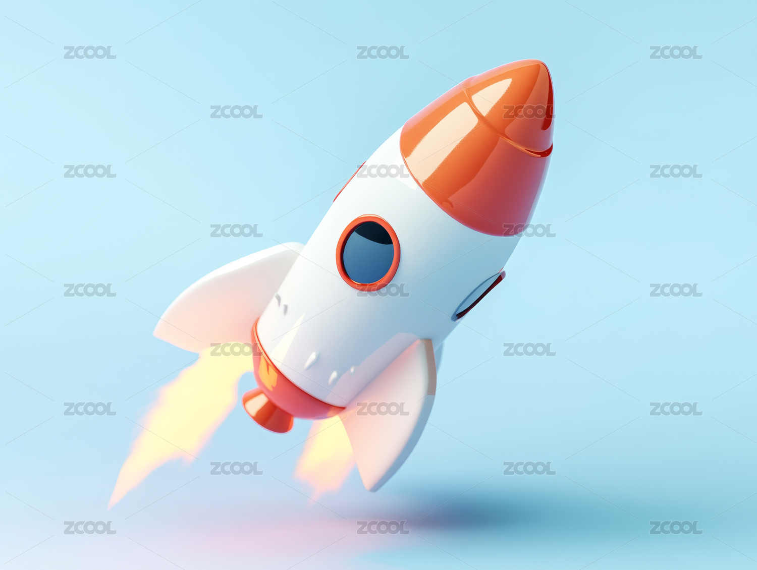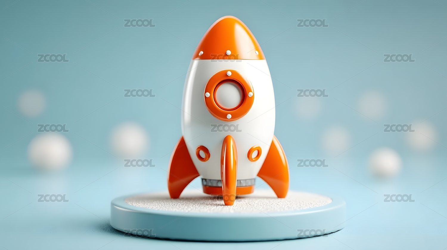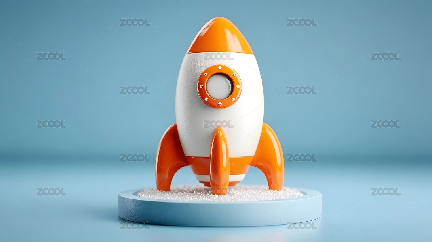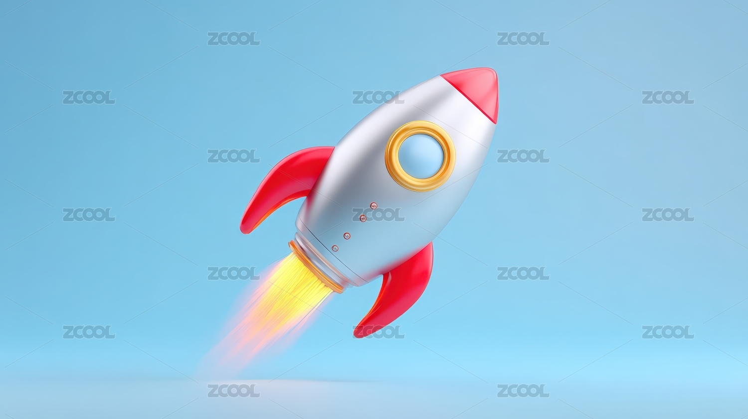 火箭,蓝色,3D,元素,物体,白色,背景,卡通