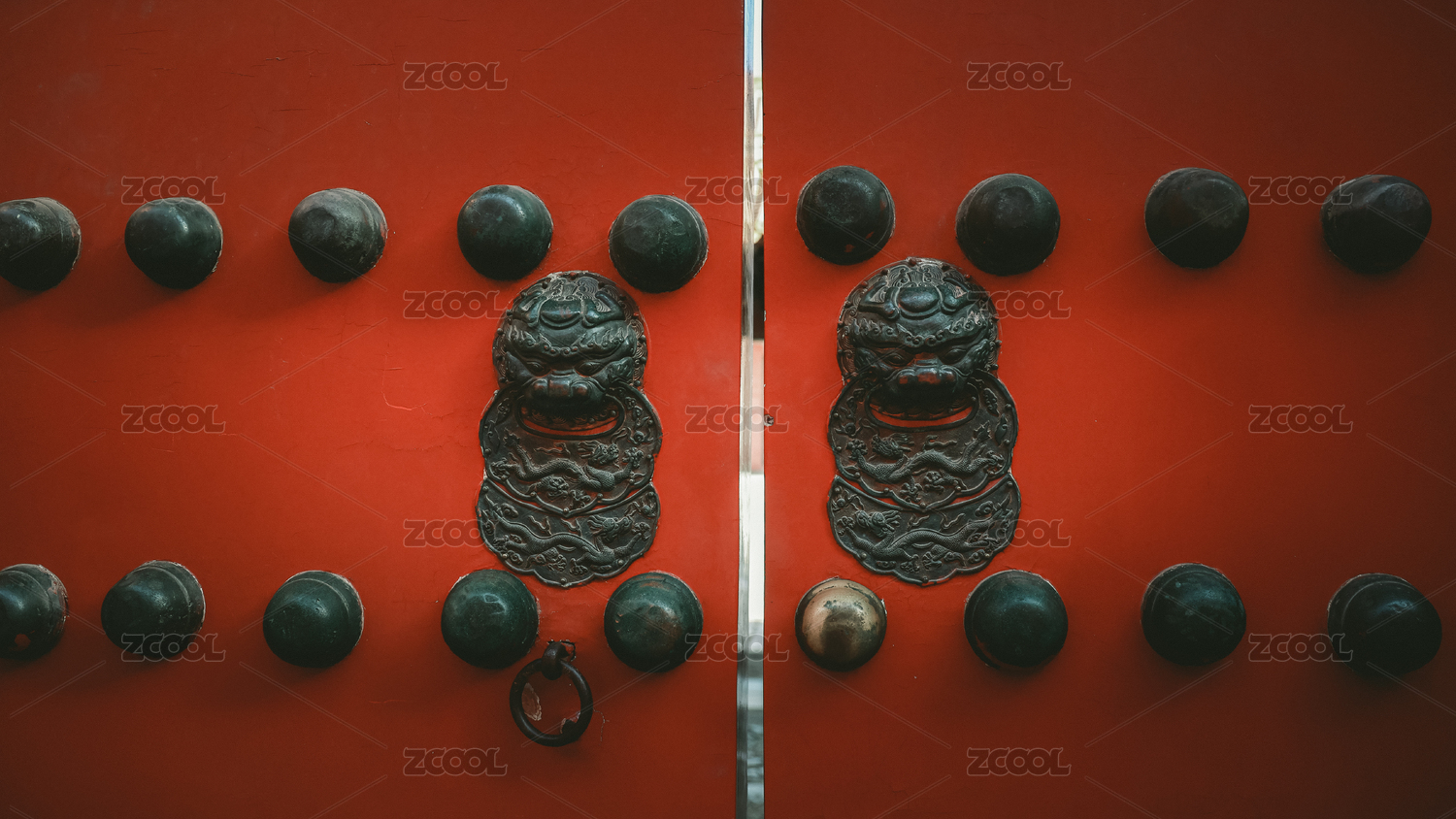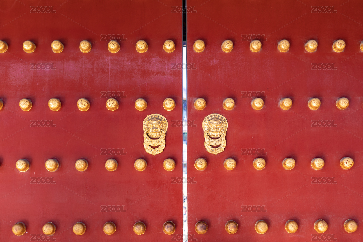 故宫宫殿的红色大门和门钉