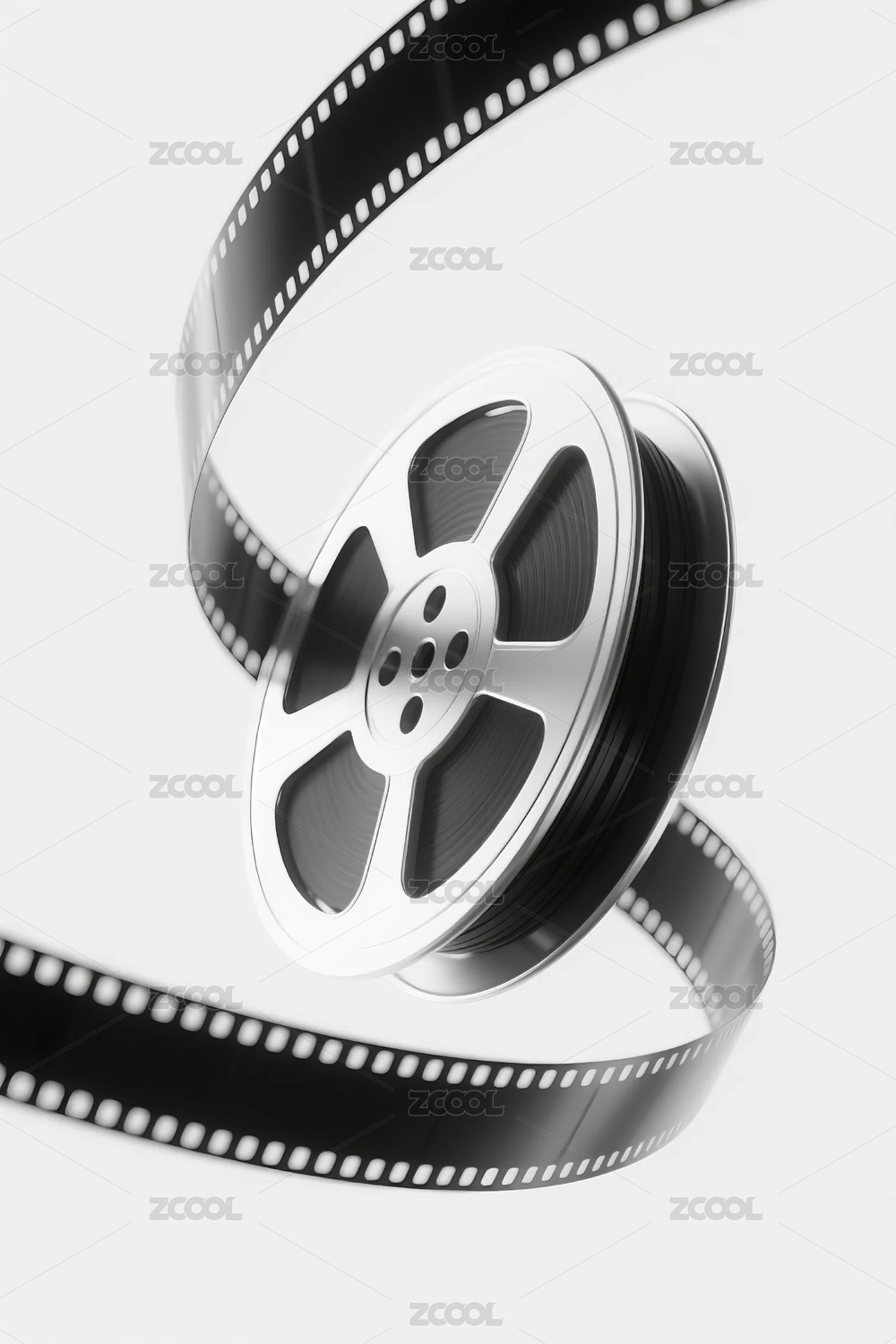 极简电影胶片胶卷元素特写黑白帧白底背景图