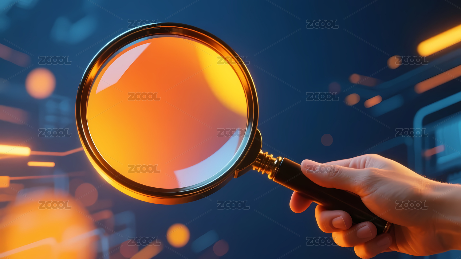 橙黑放大镜蓝橙渐变背景