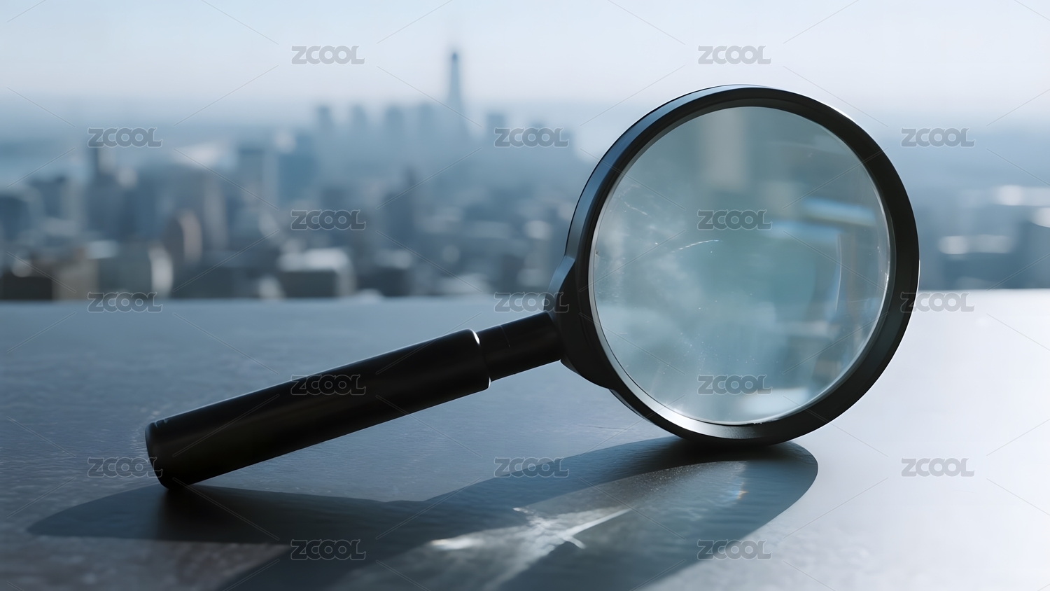 放大镜聚焦城市景观
