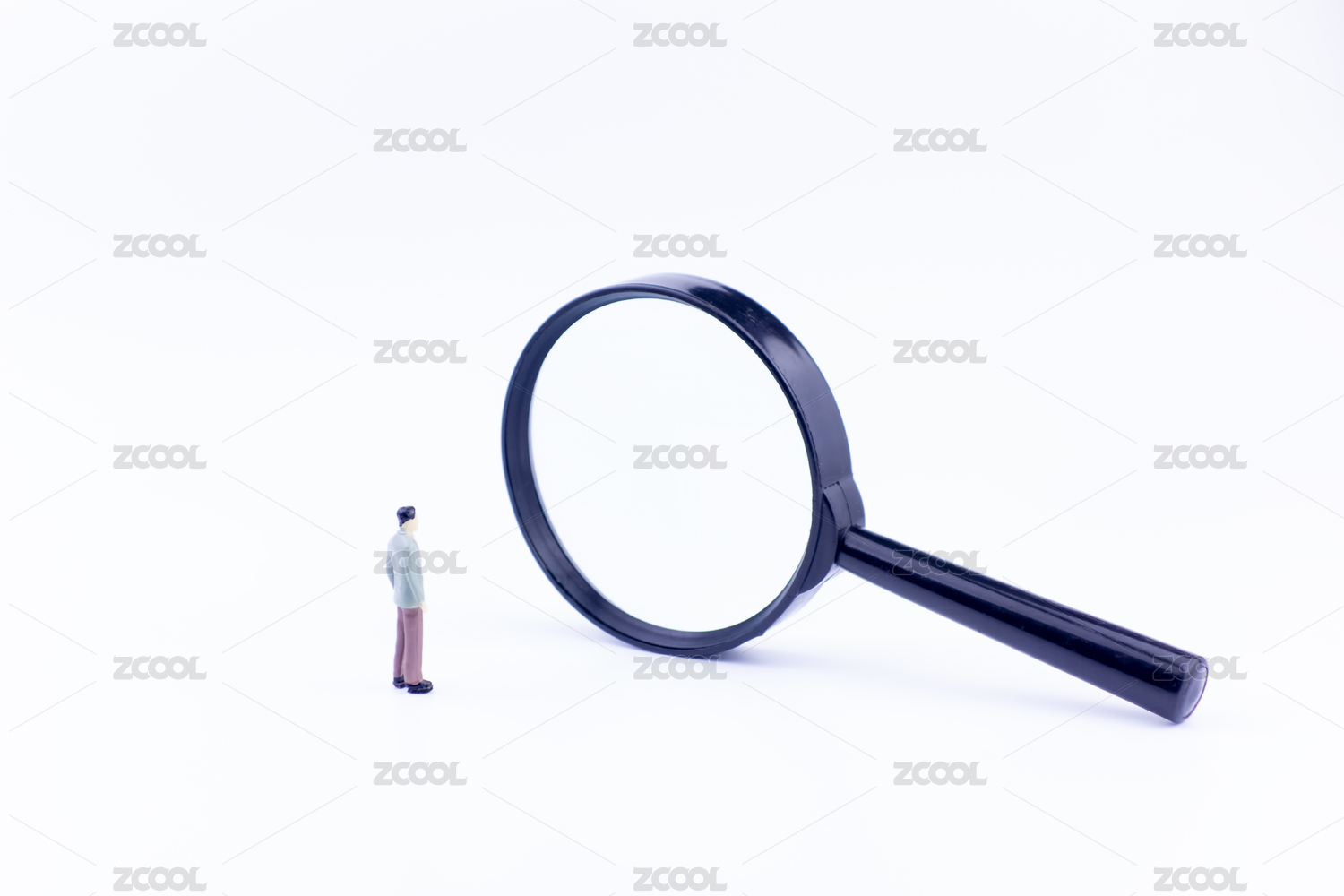 放大镜,影棚拍摄,静物,白色背景,一个物体,金融,放大效果,搜寻,黄金,创造力