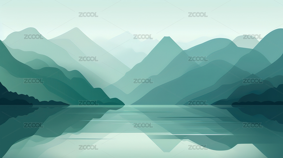 平静湖面与远山