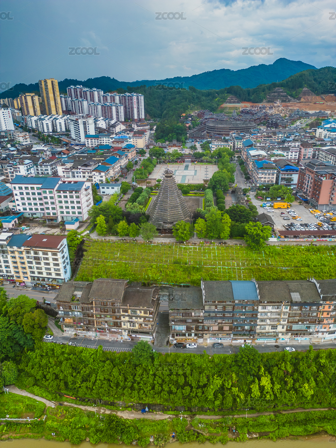 柳州,三江县,县城,建筑,航拍,侗族,侗乡,寻江,县城建筑