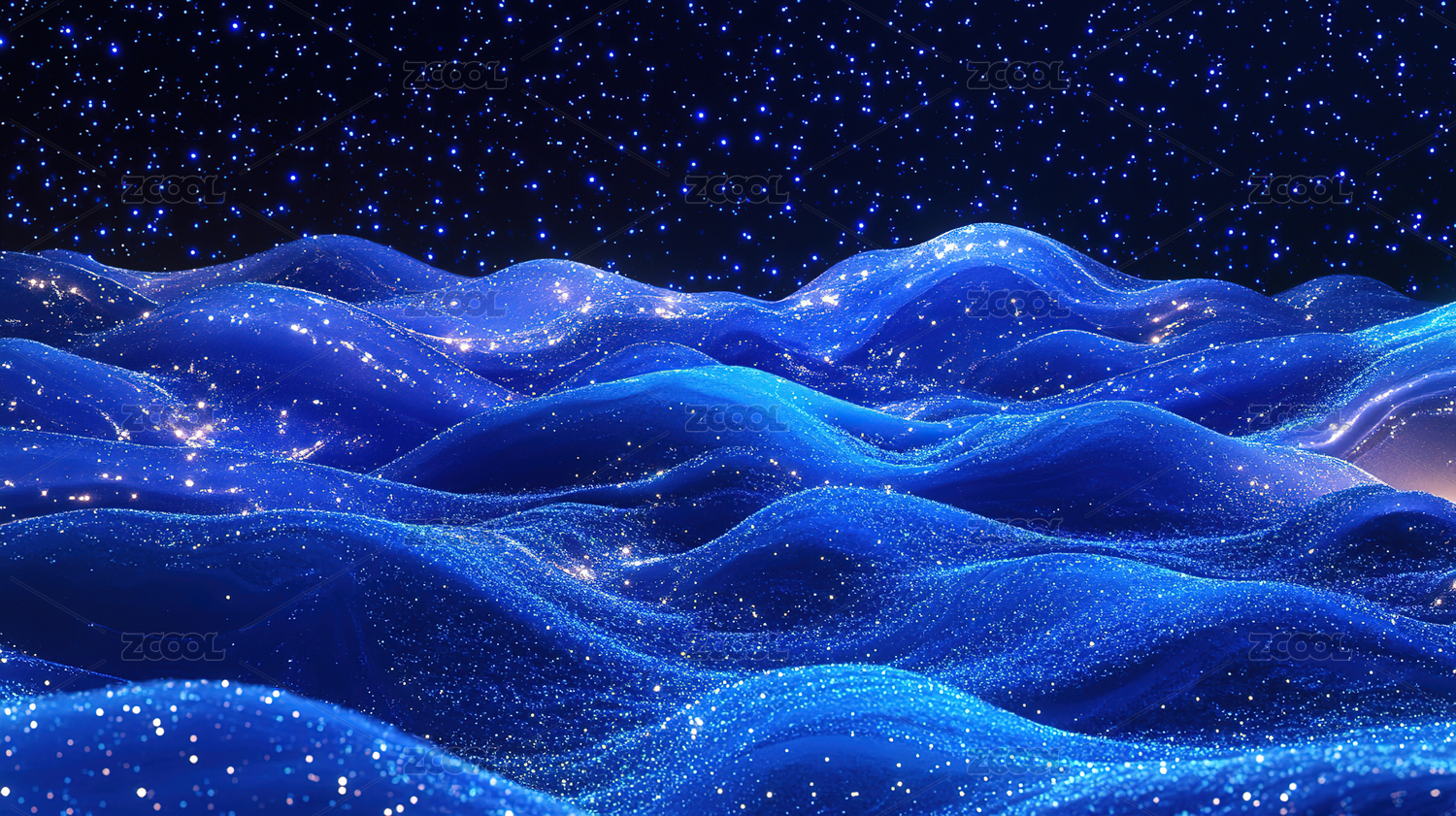 蓝色星尘粒子波浪涌动