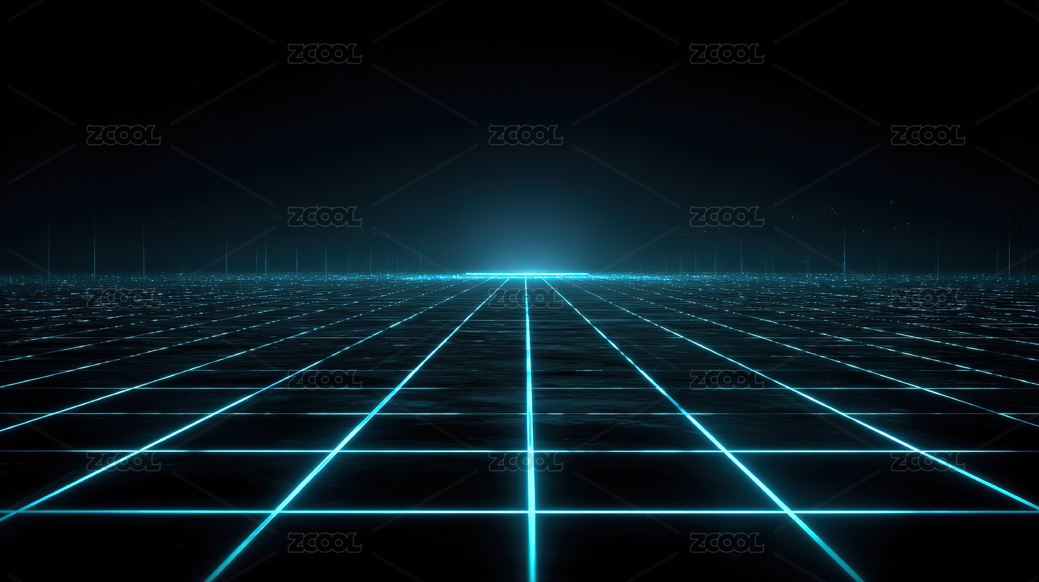 深色背景蓝色网格光线延伸向远方