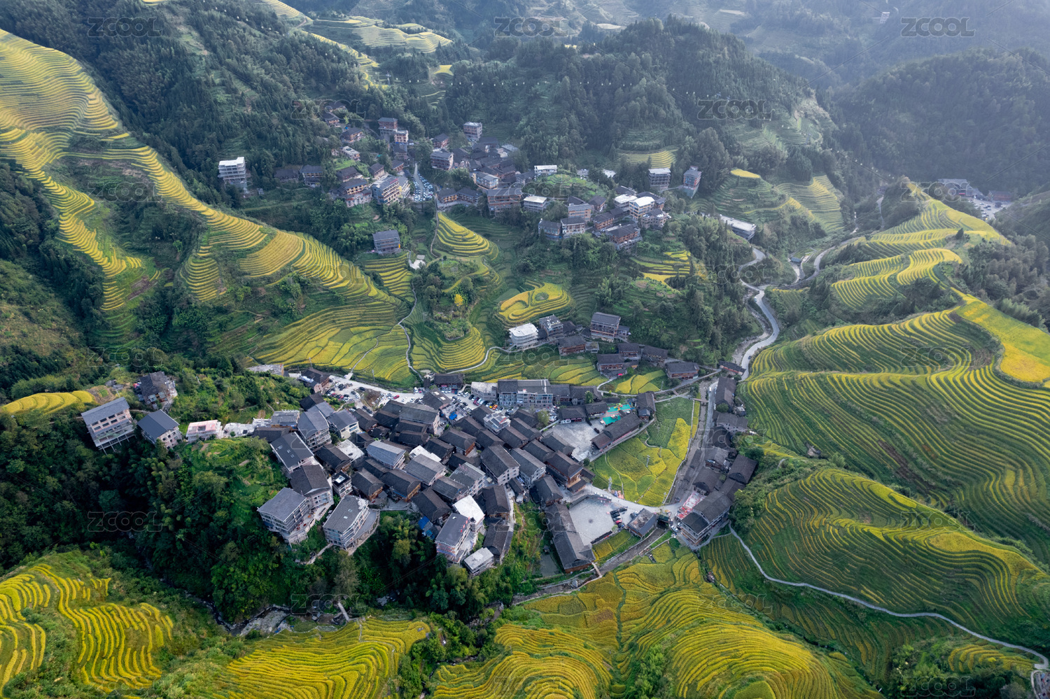 航拍中国广西桂林龙胜县龙脊梯田稻田秋季丰收