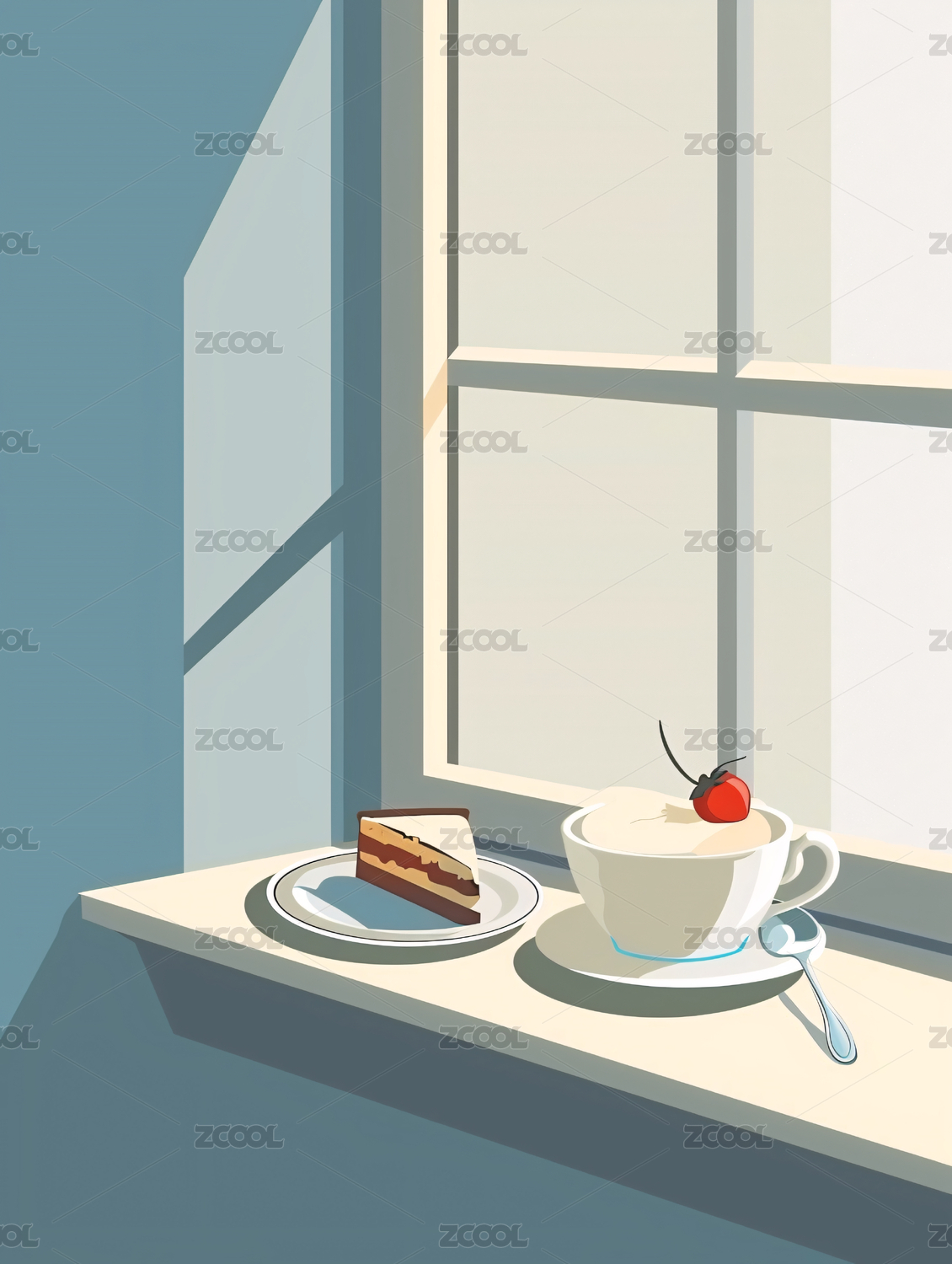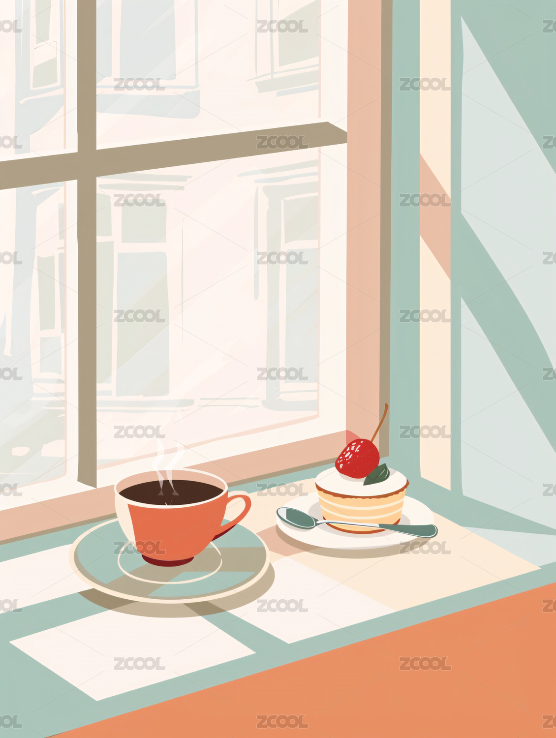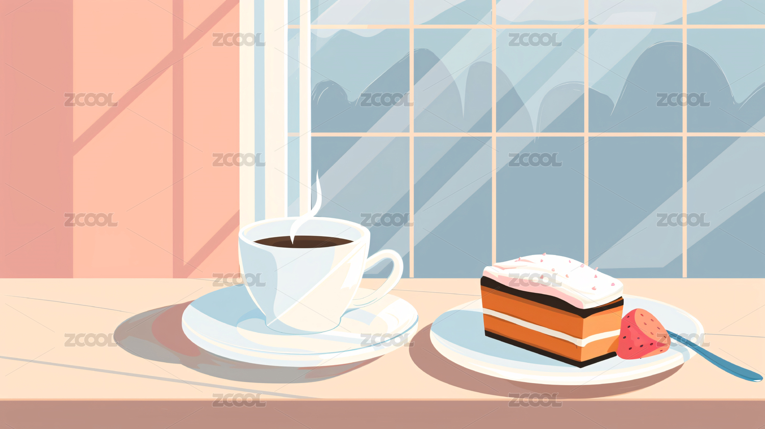 牛奶咖啡蛋糕下午茶简约扁平风时尚插画