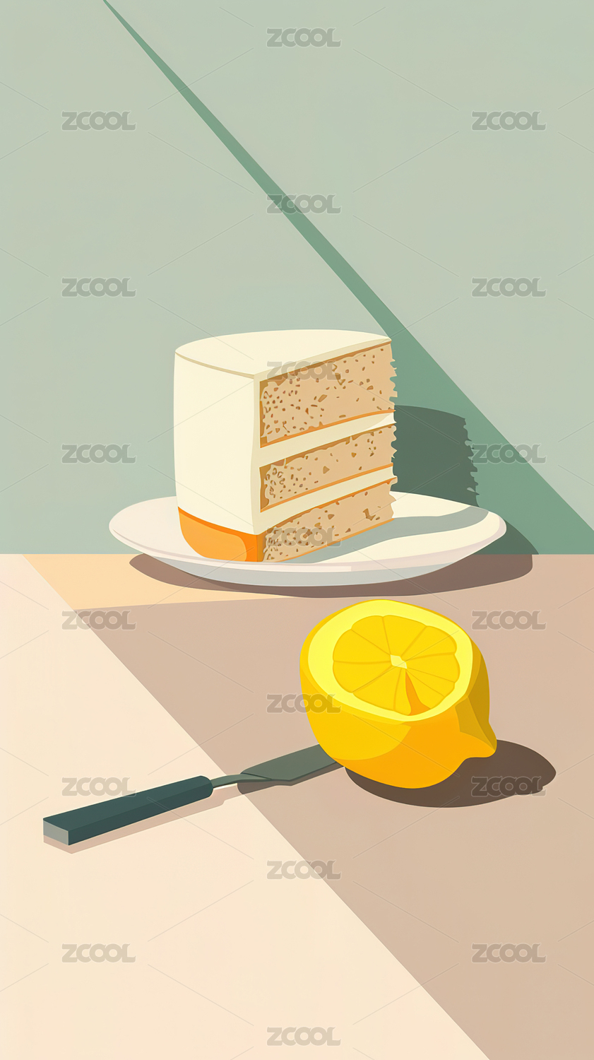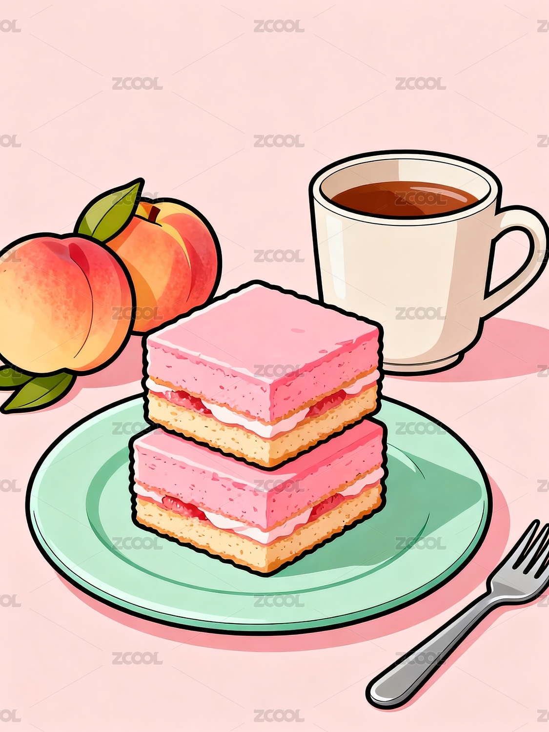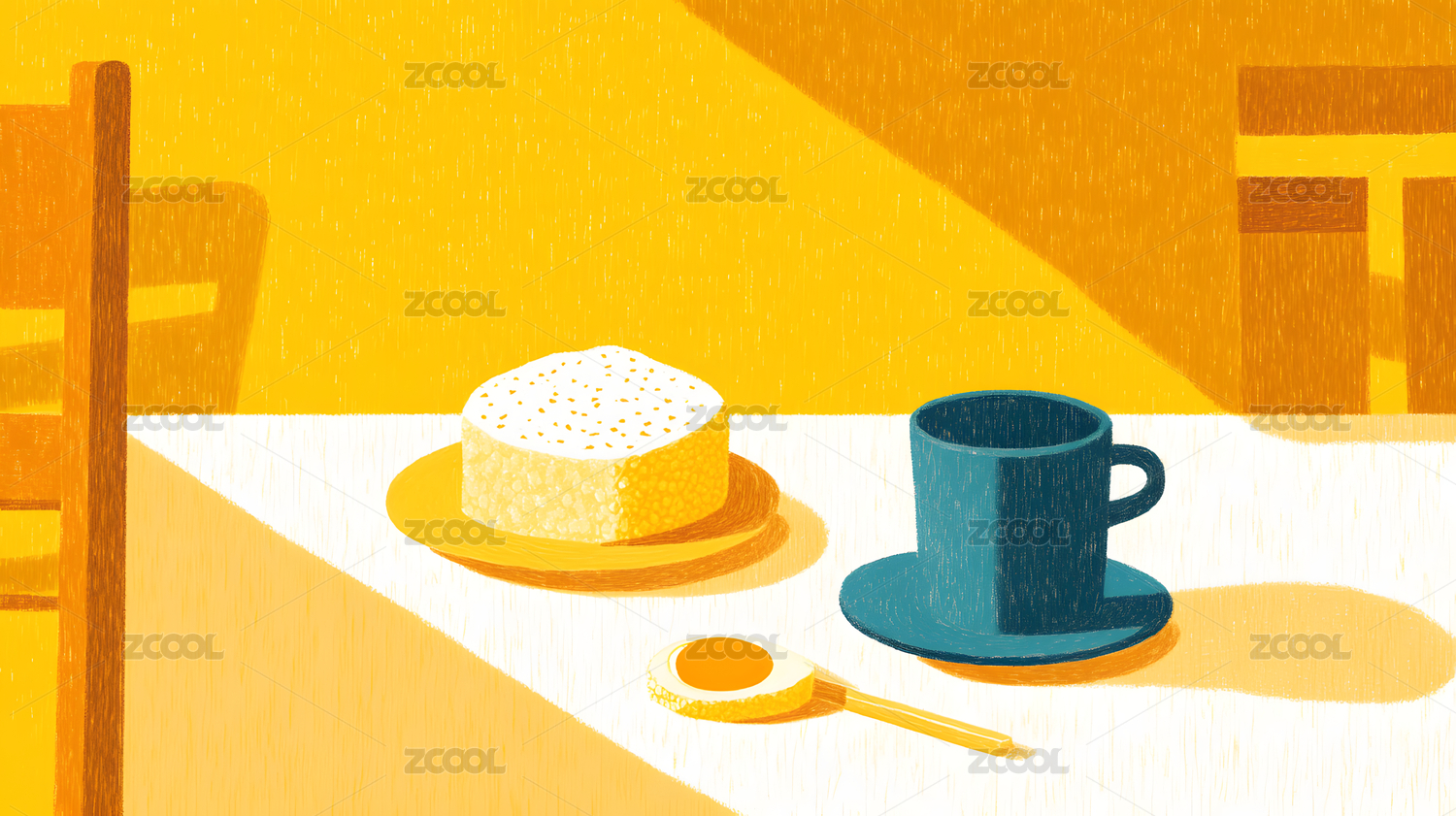 牛奶咖啡蛋糕下午茶简约扁平风时尚插画
