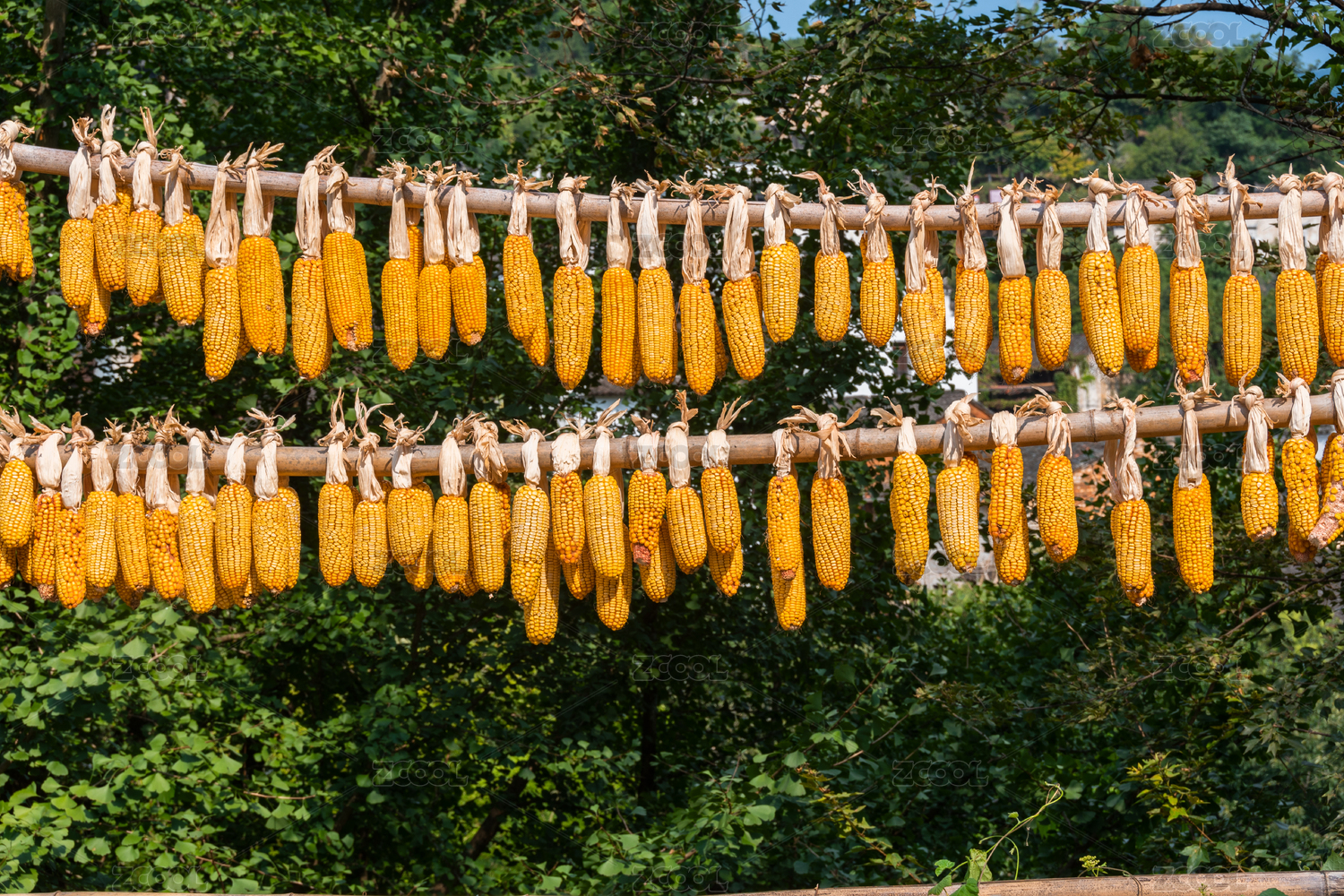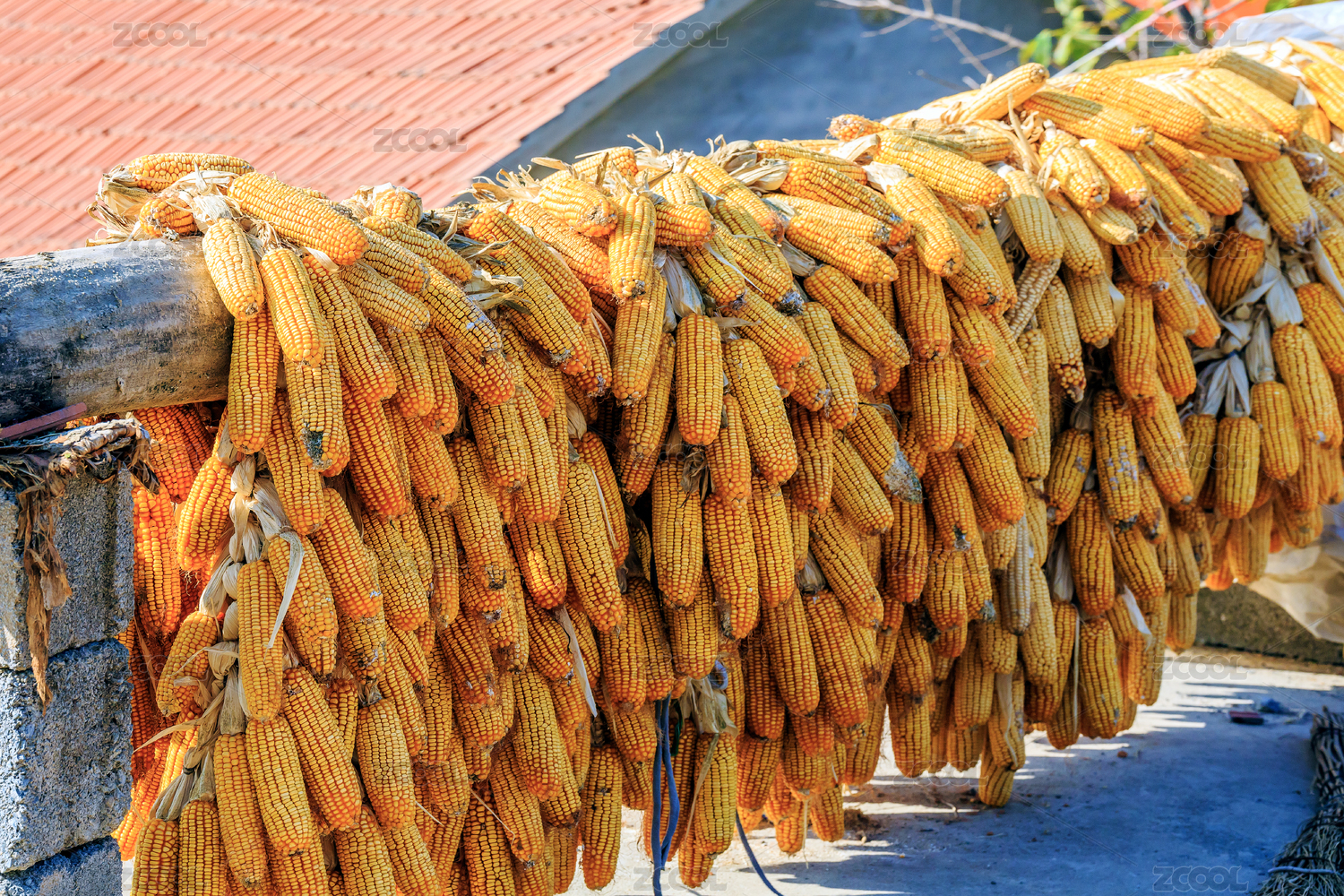 贵州黔东南郎德上寨晾晒的玉米和高粱