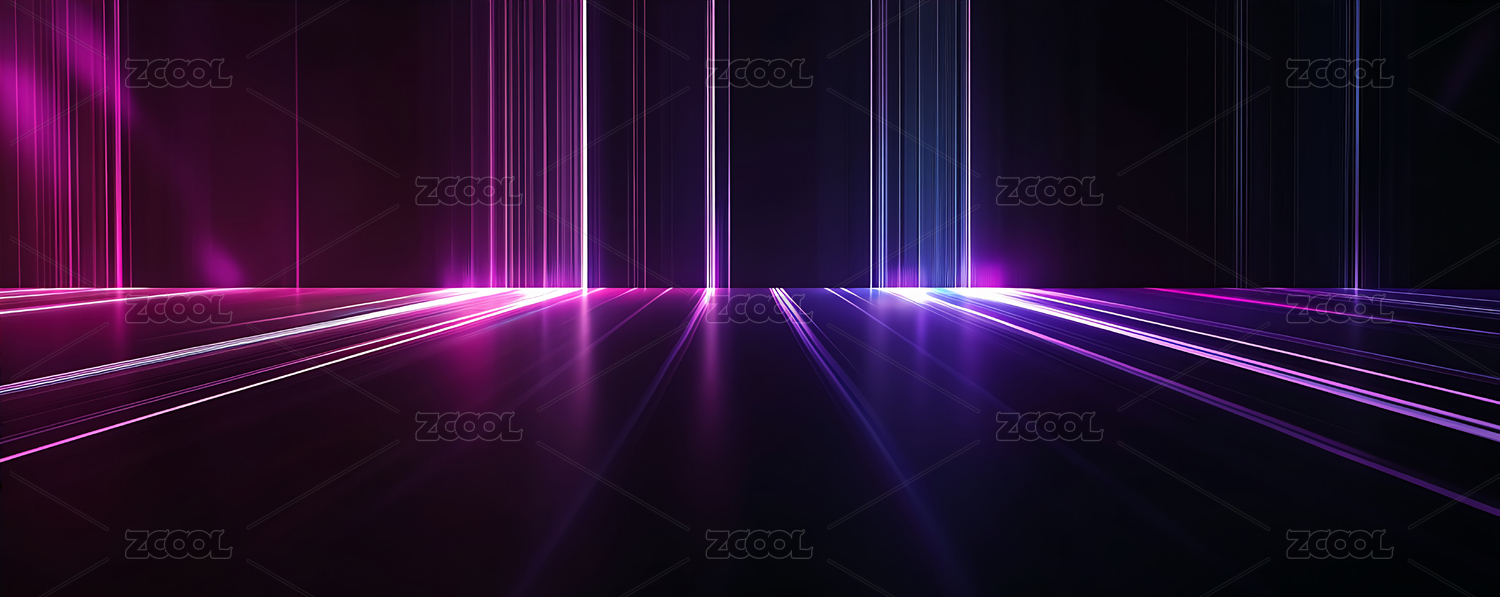 霓虹灯照射下的空旷舞台,蓝紫交织