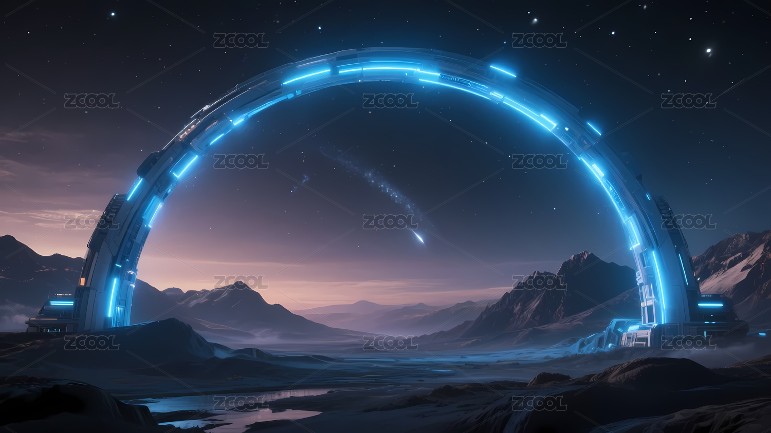 星空远山发光环形