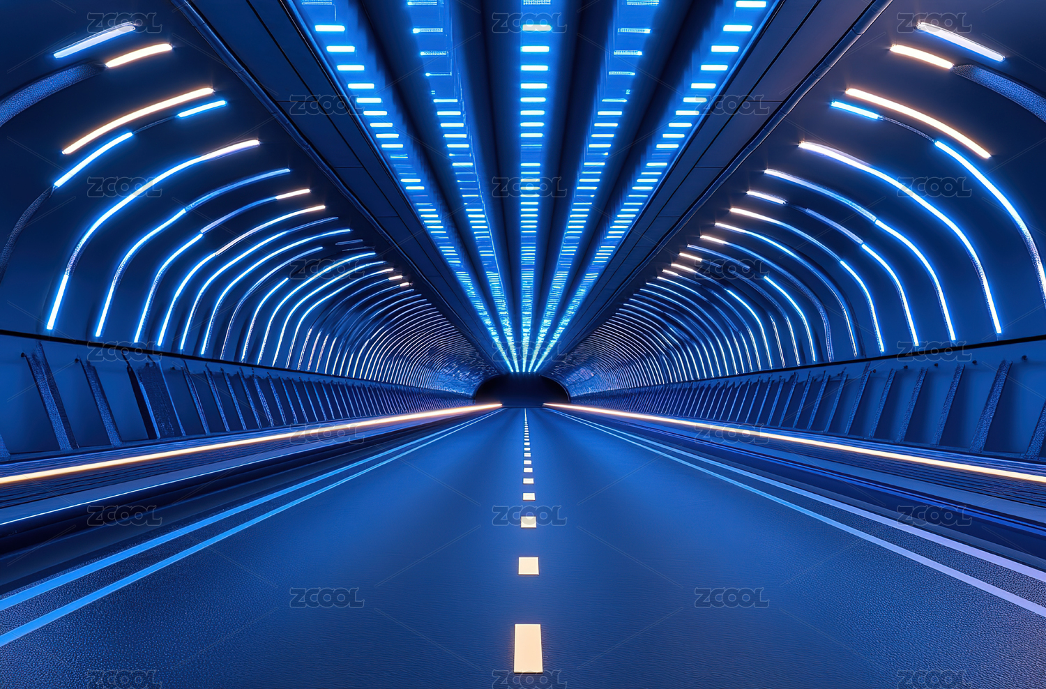 无人,未来,AI数字艺术,三维图形,发光,抽象,人造空间,隧道,建筑,霓虹灯