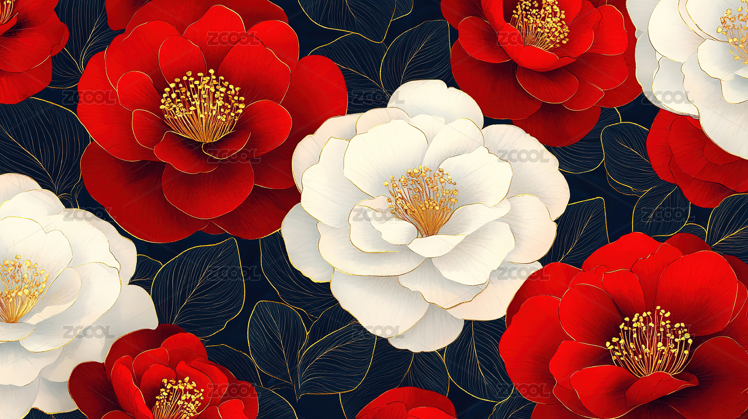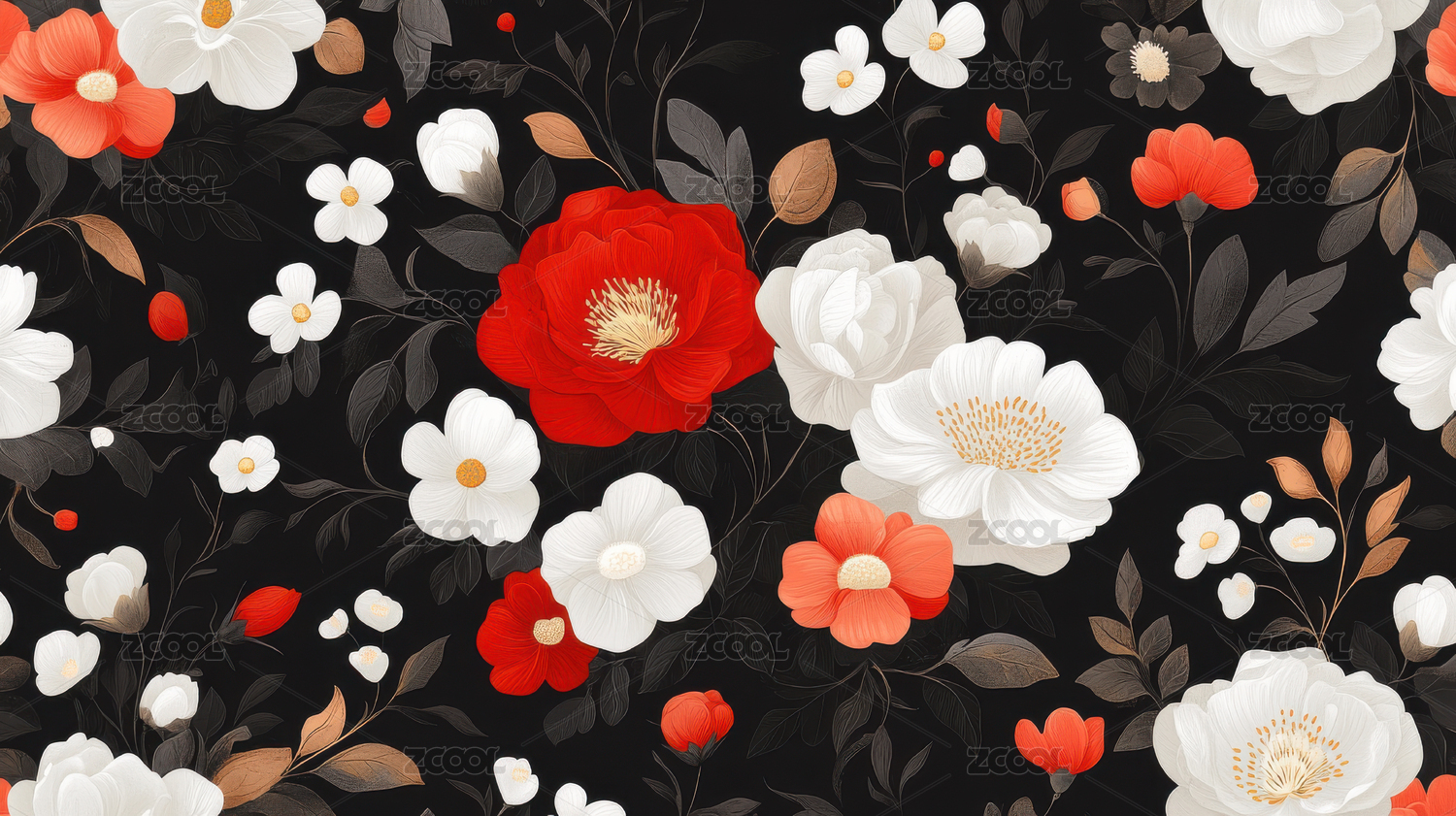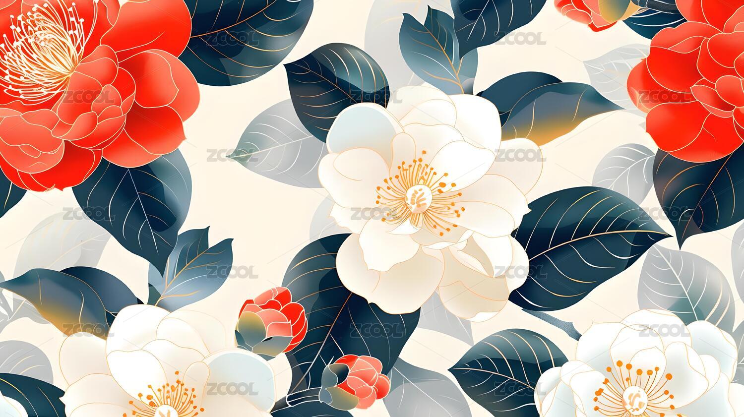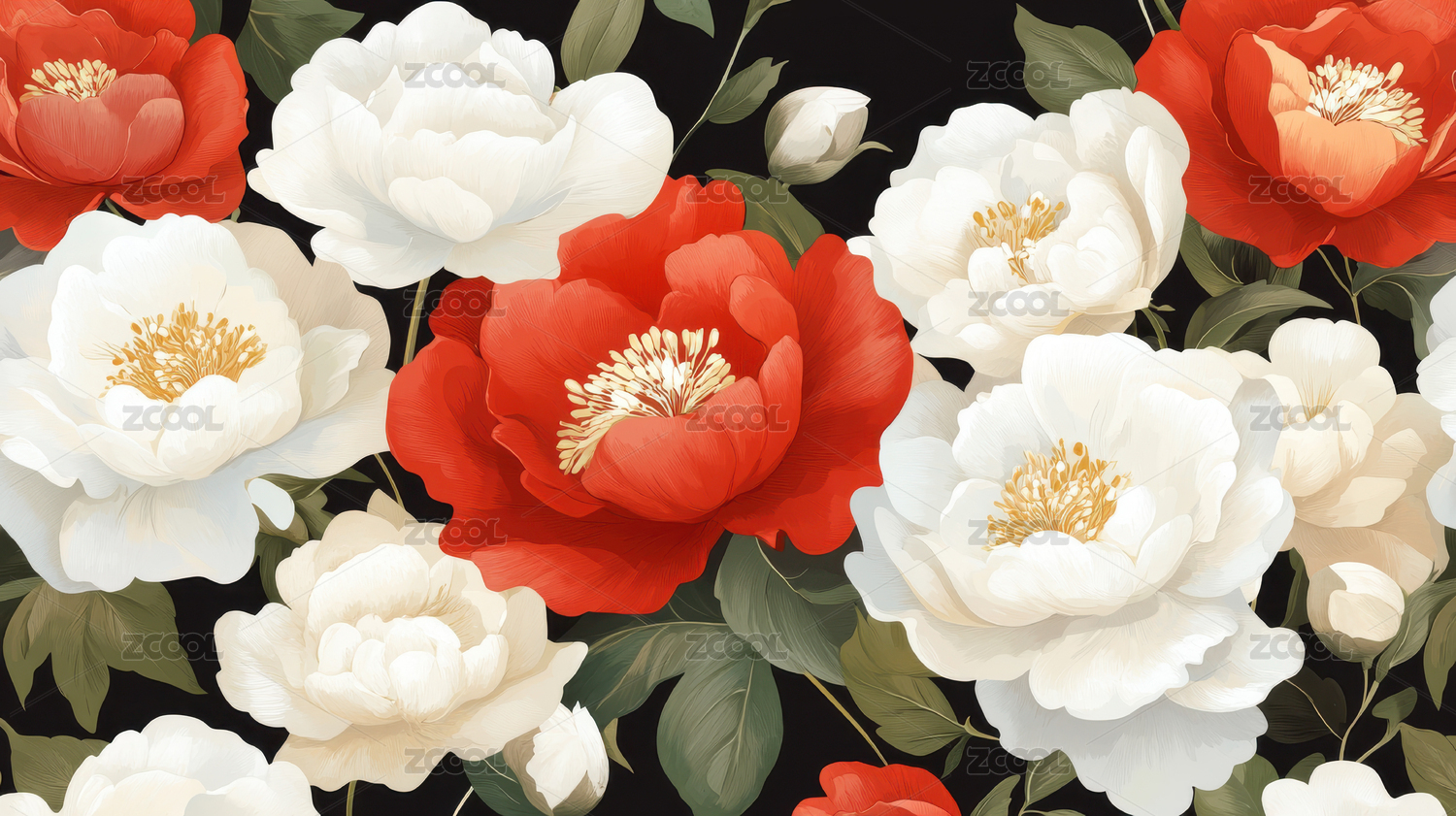 粉色黄色牡丹花植物水彩无缝图案纹理