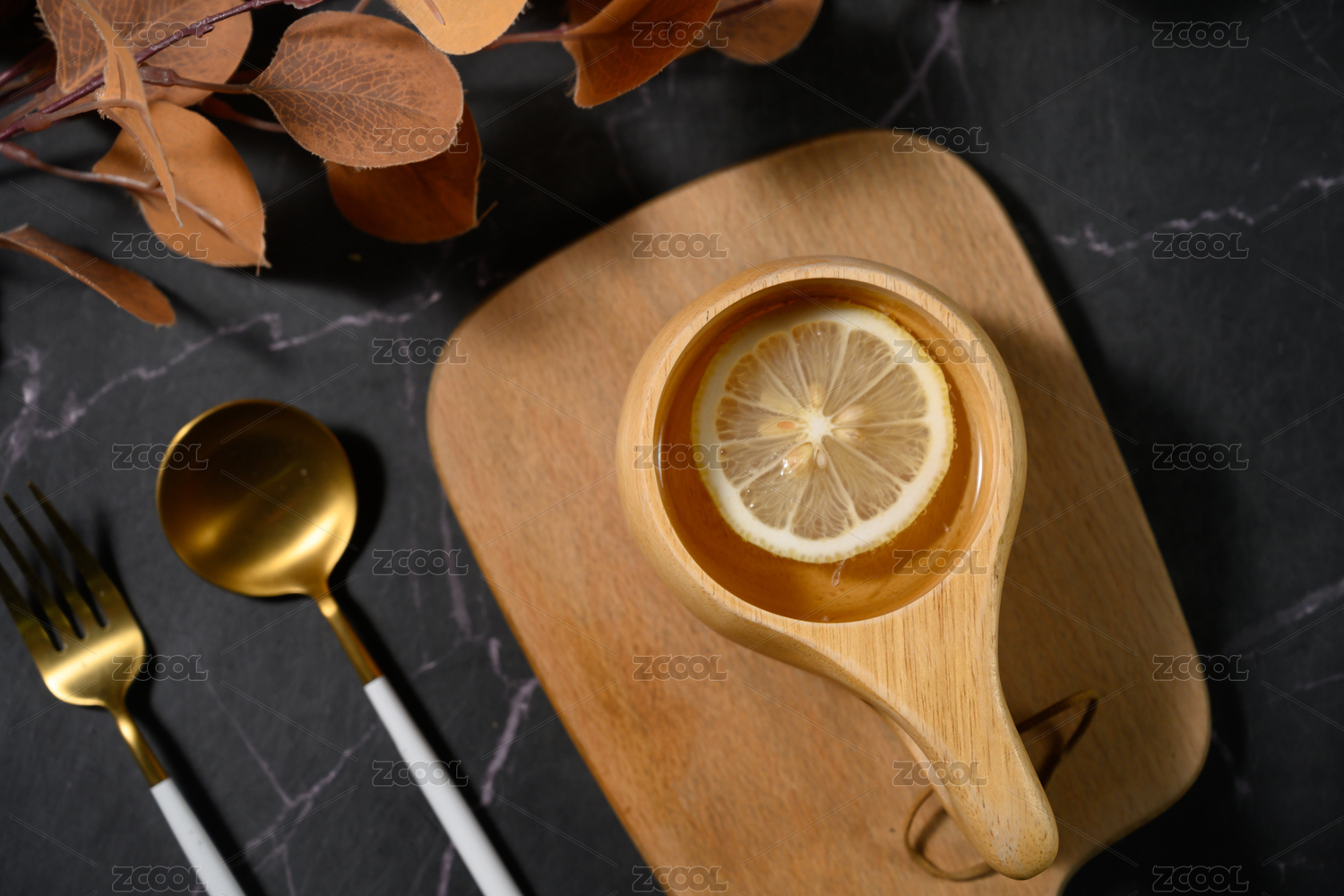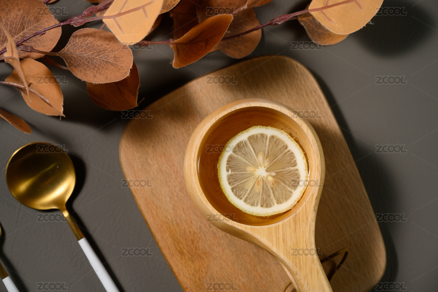 桌面上的盘子里的美味可口的蜂蜜柠檬片