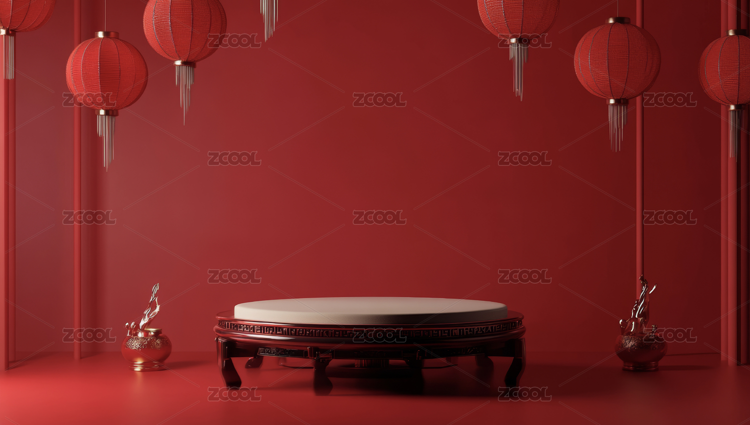 红色背景下的中式灯笼