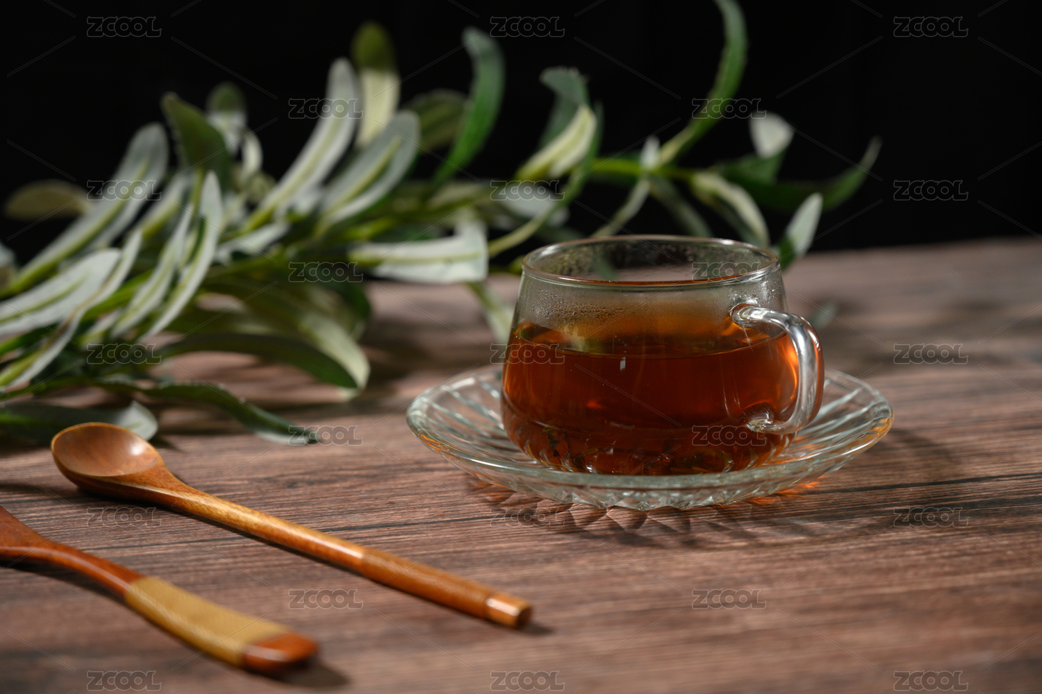 桌面上的盘子里的美味可口的咖啡果皮茶