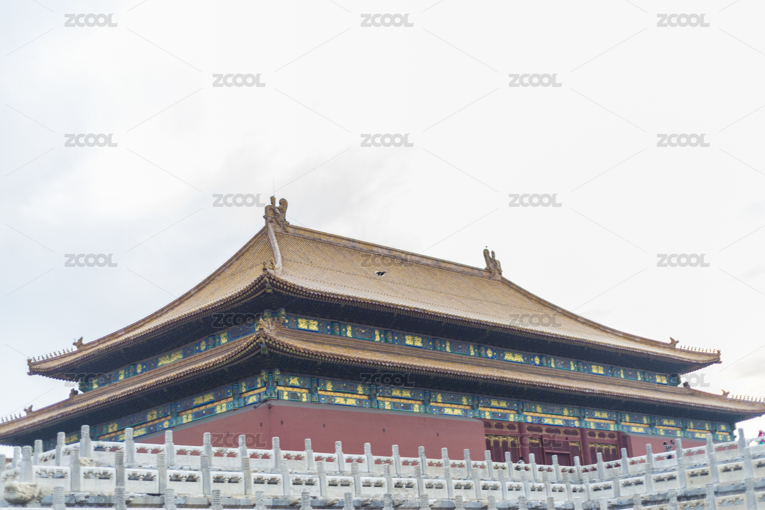 蓝天夏日下北京故宫宫殿古建筑太和殿全貌